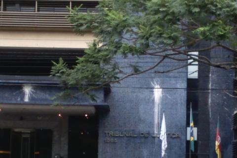 Porto Alegre-RS: Bombas de tinta no Tribunal de Justiça pela sentença a 11 anos de prisão do Rafael Braga, único preso pelos protestos de 2013