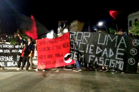 Rafael Braga Vieira, catador de lixo e morador de rua, foi detido em 21 de junho de 2013 no contexto dos protestos históricos contra o aumento da passagem no Brasil. Acusação: porte de artefato incendiário ou explosivo. O que ele tinha nas mãos eram duas garrafas de plástico, uma de água sanitária e uma de pinho sol.