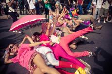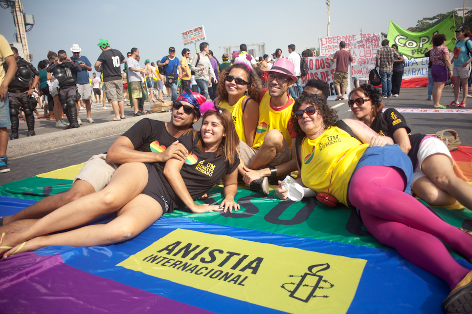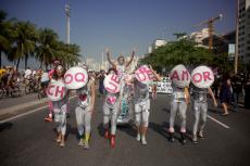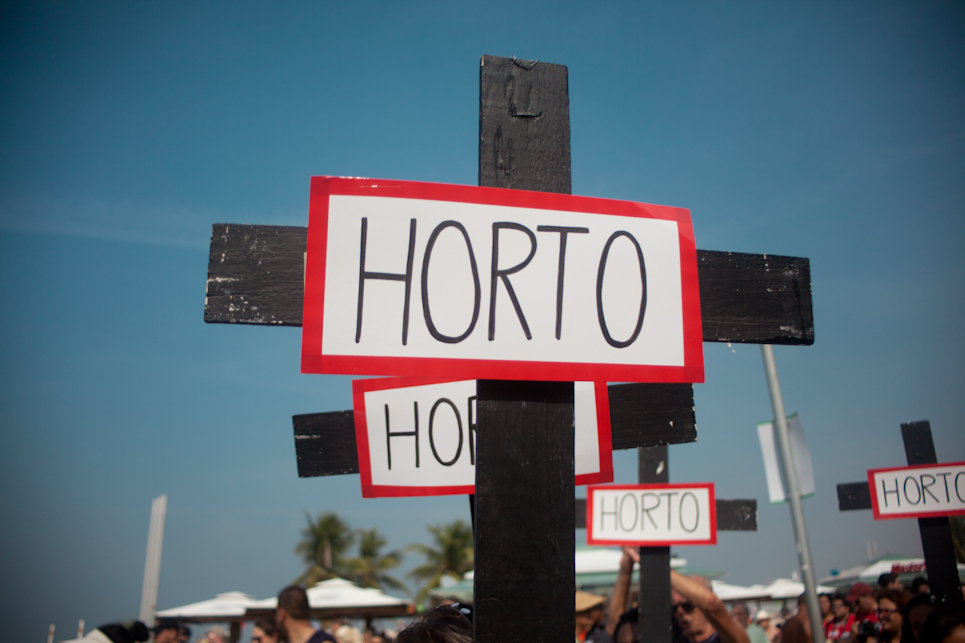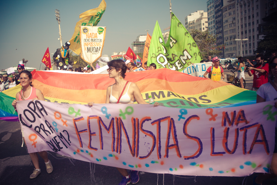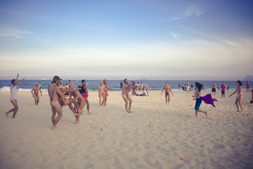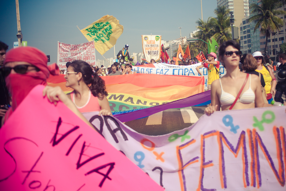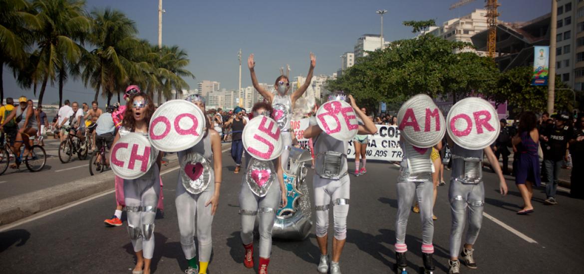 Pouco antes do início do jogo do Brasil, no sábado (28/06), a praia de Copacabana foi tomada por diversos movimentos sociais que participavam do segundo ato “Copa na Rua”. A comissão de frente do “Choque de amor” deu o tom da manifestação.