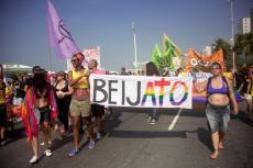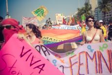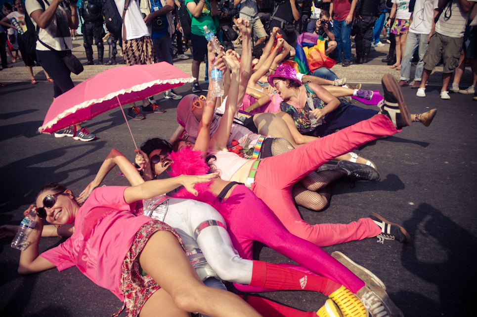 Dia 28 de junho é o Dia internacional do Orgulho LGBT e a manifestação trouxe, também, as músicas e as bandeiras da luta LGBT.