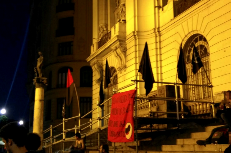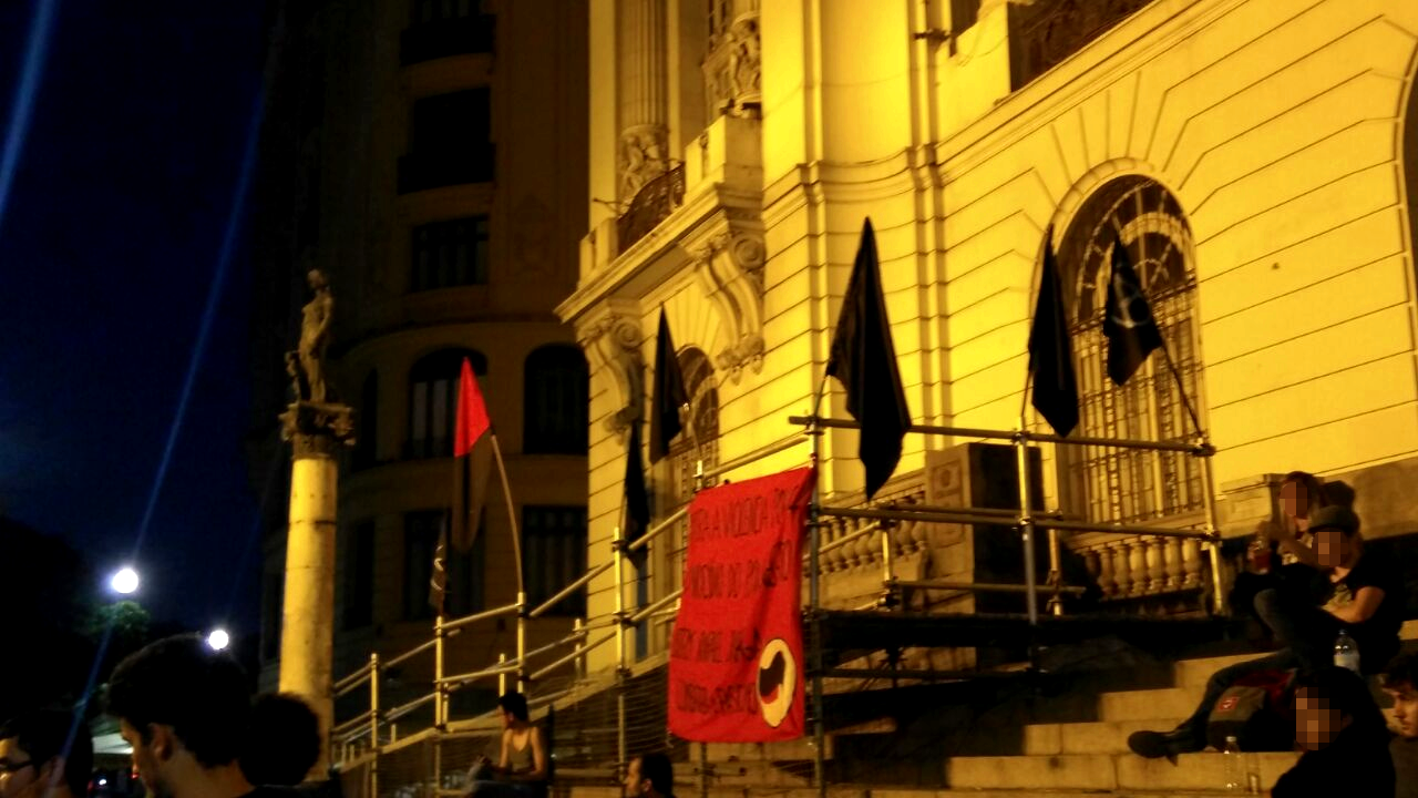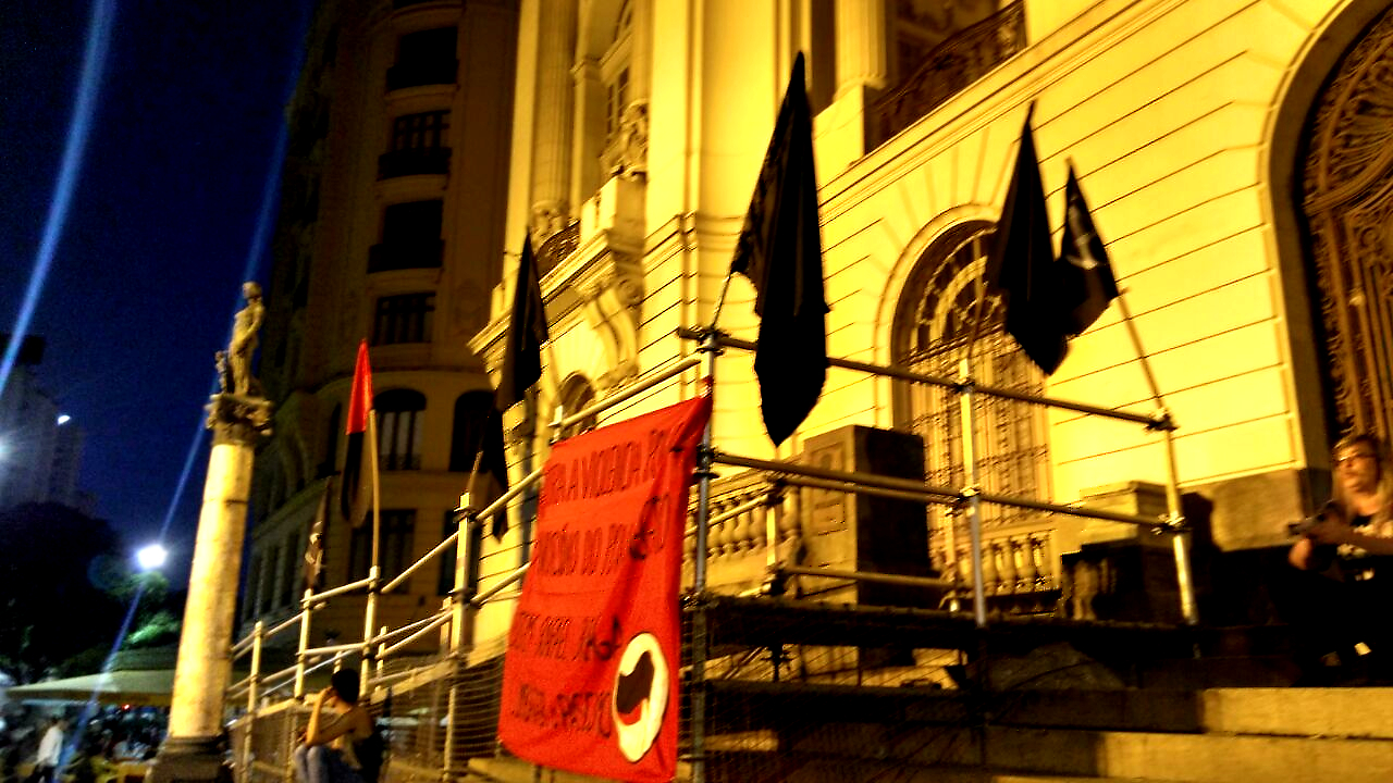 O ato ocorria pacífico desde sua saída, por volta de 18 horas. Manifestantes fizeram paradas ao passar pelo Clube Militar Central, próximo ao Cine Odeon – onde gritaram palavras de ordem contra a ditadura militar e pedindo justiça aos/às mortos/as no regime – e na embaixada norte-americana, onde ecoaram gritos contra o presidente Trump, quem compactua abertamente com as ideias nazi-fascistas e prega uma política extremamente xenófoba.