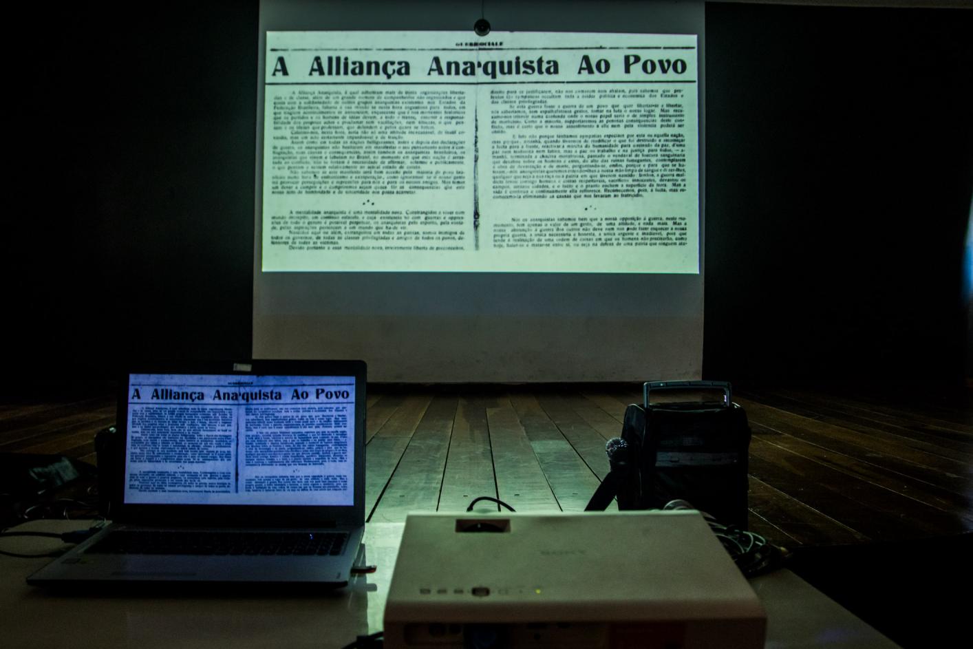 chamada do cinedebate Durante o debate a discussão ressaltou o paralelo entre o processo de ocupação e da greve geral de 1917. Contamos com a presença dos alunos da instituição e convidados. Além do documentário e o debate, ocorreu a leitura de um poema escrito pelo próprio Carlos Pronzato do livro “Poemas de Combate”.