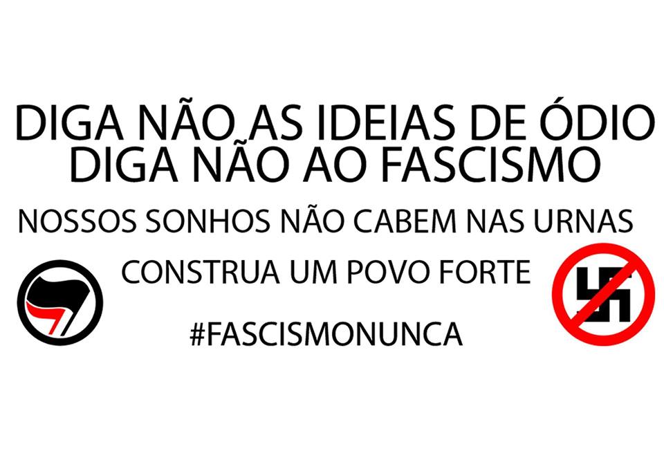 Nesse ano de 2018 se tornou mais do que obvio o crescimento do fascismo no Brasil. Porém ao contrário do que alguns tem dito, políticos fascistas não são a causa disso, são a consequência. Independente de quem ganhar as eleições, eles estão tomando forma, estão propagando suas ideias e vão continuar. O perigo maior está além do jogo democrático-burguês, precisamos ampliar nosso campo de visão e, no lugar de se posicionar apenas contra candidato X, nos posicionar contra todas as ideias de ódio, contra todas as propagandas que levam ao fascismo. A luta antifascista não é institucional, vamos construir um povo forte e prosseguir na resistência!