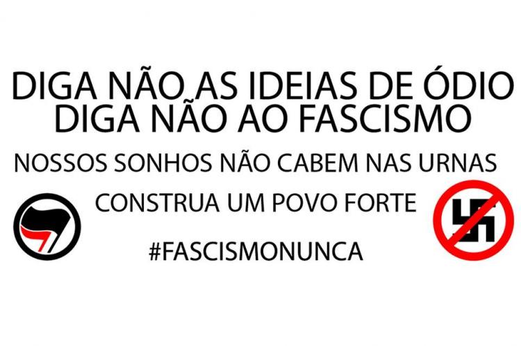 Convidamos todxs para somar na campanha "Contra as Ideias de Ódio" de forma orgânica, compartilhem, re-postem, copiem a imagem e o texto, ou façam seus próprios e vamos propagar a ideia antifascista, não contra pessoa X ou Y, mas sim contra um regime politico que NUNCA pode ser aceito. (Lembre-se de usar a #fascismoNunca )