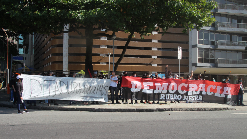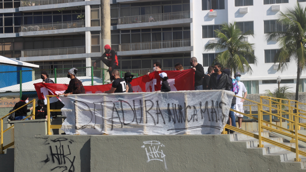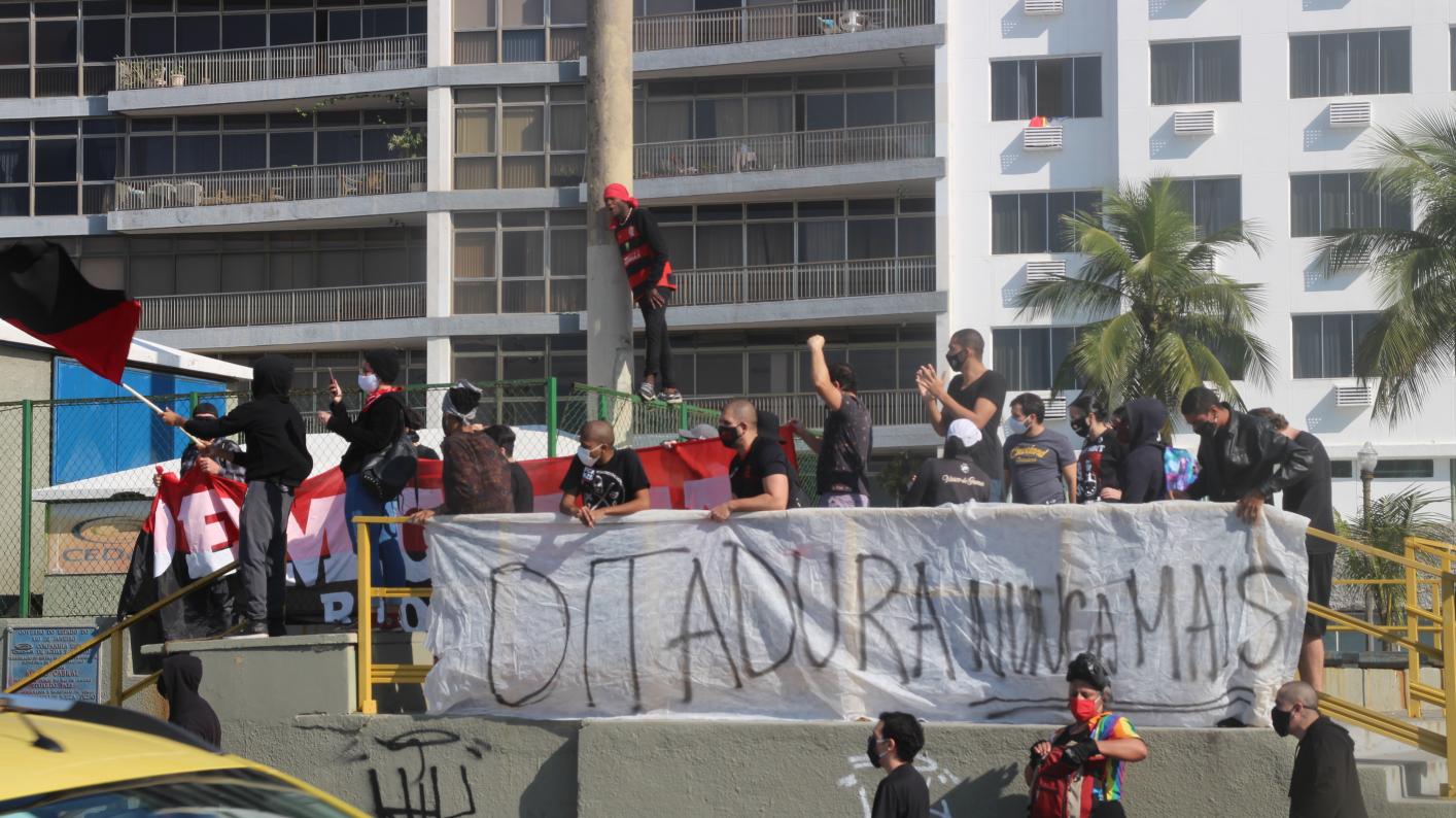 Cerca de 50 manifestantes antifascistas, convocados pelo coletivo Flamengo Antifascista e contando com outros grupos antifas e anarquistas, conseguiram interromper a manifestação bolsonarista que acontecia em Copacabana, por volta das 10 horas da manhã.