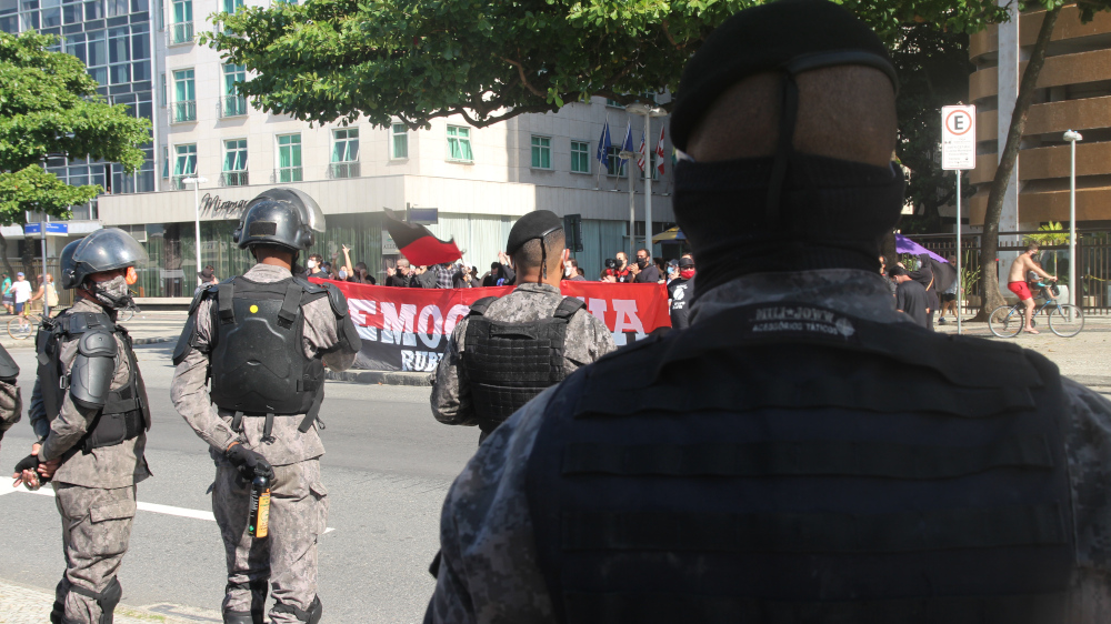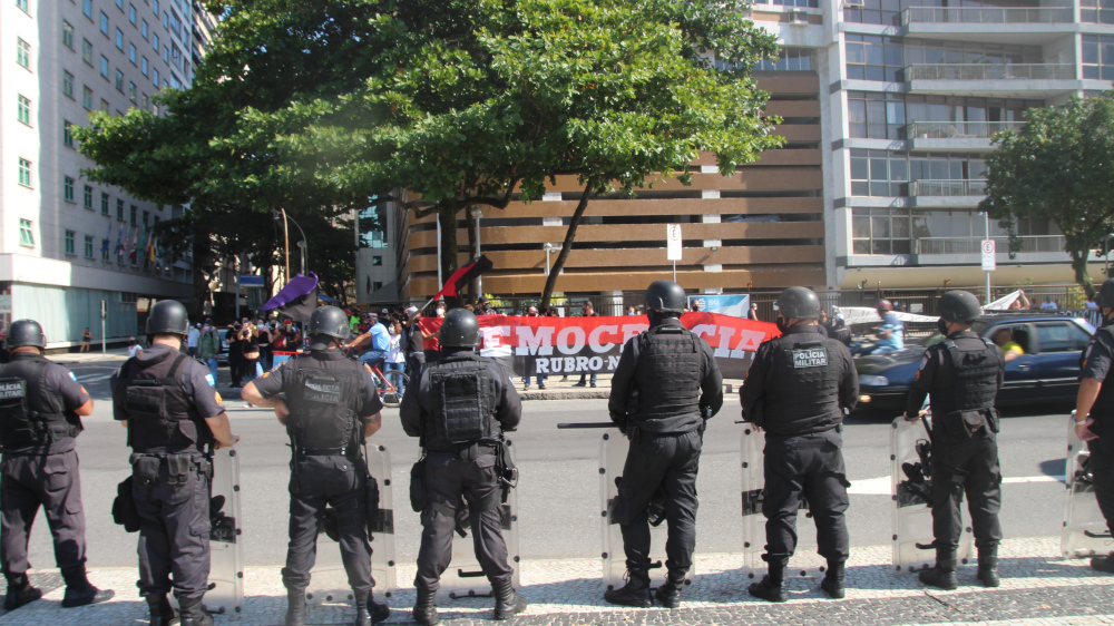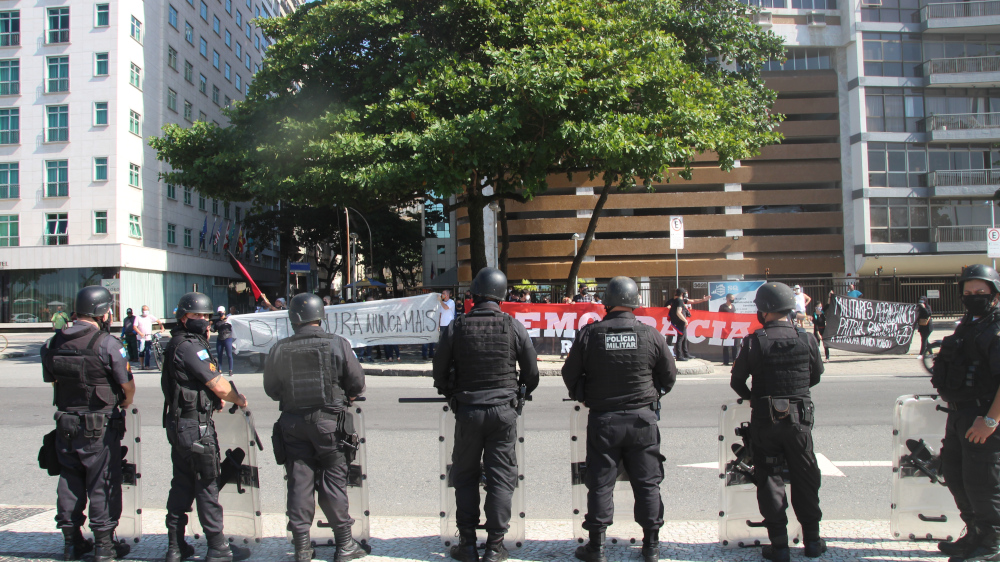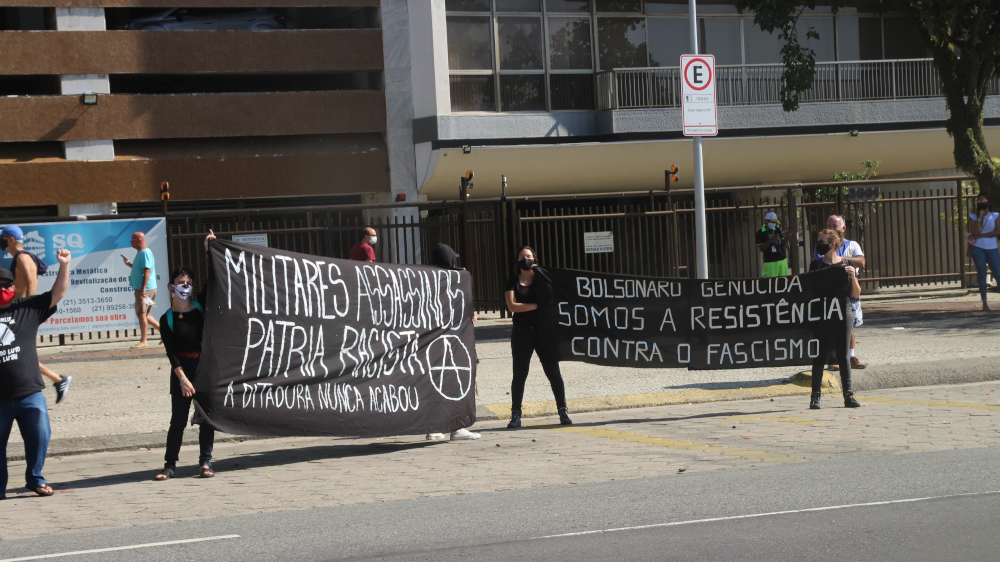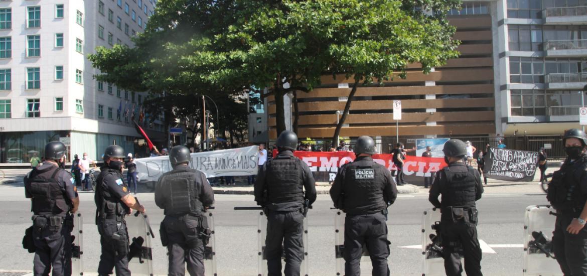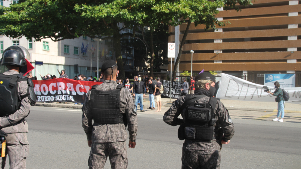 A Polícia Militar chegou a atacar o grupo 3 vezes, e alguns bolsonaristas provocaram tumultos furando o bloqueio policial e investindo contra os antifascistas, que revidaram. Nas 3 ocasiões o conflito começou por provocações bolsonaristas e a Polícia Militar agiu com brutalidade apenas contra os antifascistas, atuando como verdadeiros seguranças particulares da manifestação pró-governo. Um ativista foi detido e outro passou mal devido ao gás lançado pela Polícia Militar. Em São Paulo também houve enfrentamento e a Polícia Militar também agiu com truculência contra os manifestantes antifascistas, o que mostra claramente que a corporação tem um lado muito bem definido. O ato do Rio se encerrou por volta de meio dia e os manifestantes partiram, em grande parte, para o Palácio Guanabara, onde aconteceu a manifestação “Vidas Negras Importam”, convocada pelos movimentos de favela do Rio de Janeiro pelo fim das operações policiais em comunidades, que vem matando ainda mais jovens periféricos durante a pandemia.