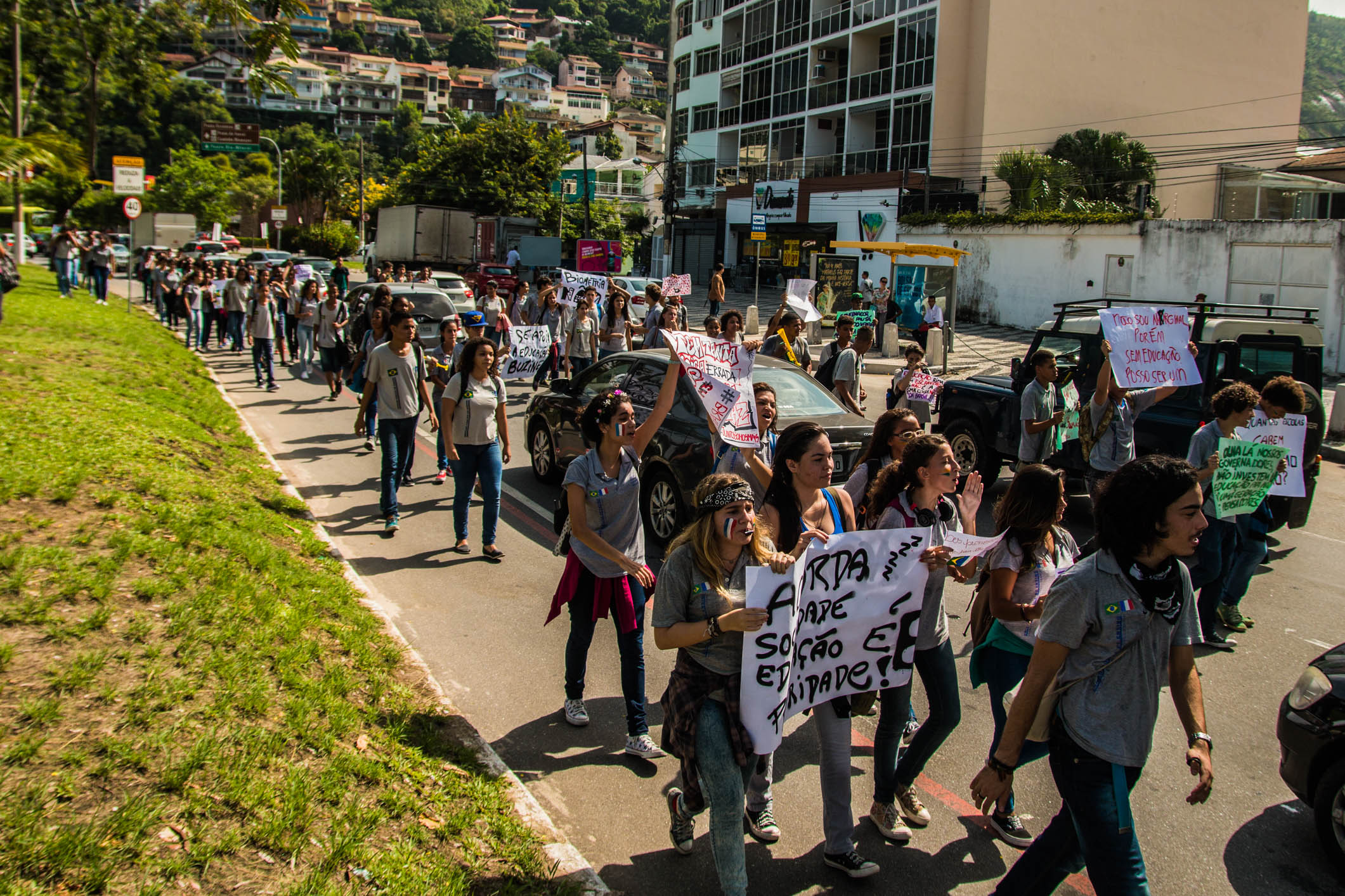 Nesta terça-feira, 15 de março, estudantes do CIEP 449: Leonel Brizola (Brasil-França), localizando em Charitas, Niterói, saíram em protesto pelas avenidas de São Francisco e Icaraí, fechando parte das ruas e chamando atenção com cartazes e músicas.