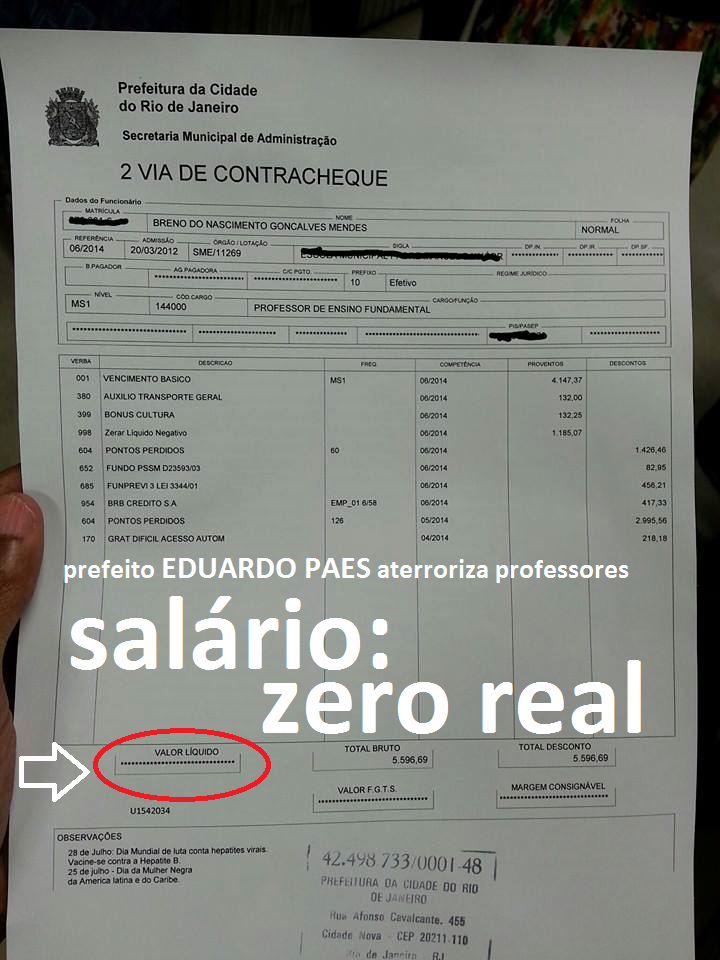 Contracheque com valor líquido de R$0. Imagem: Breno Mendes