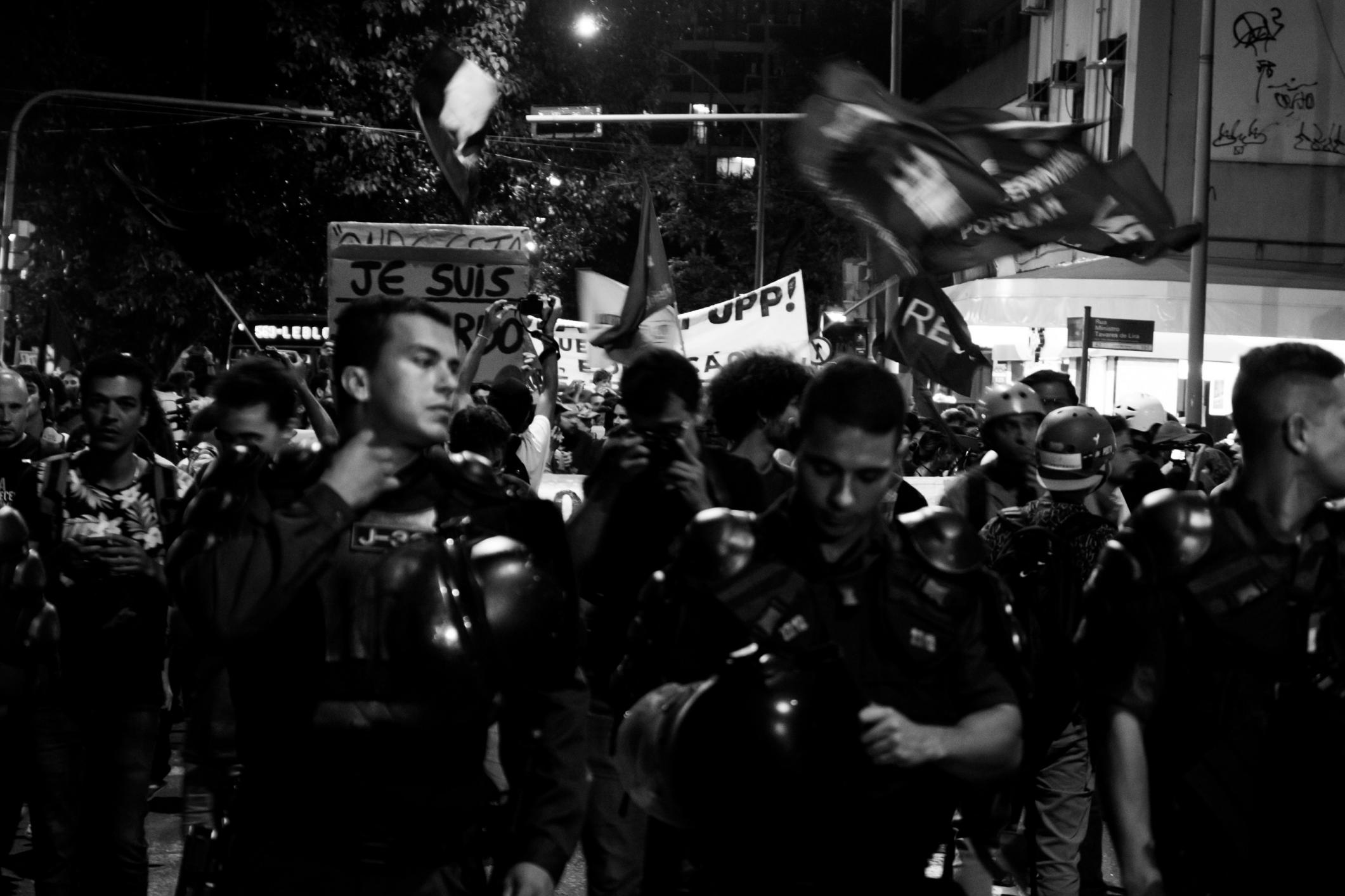 A concentração foi marcada para as 17hs, horário de maior circulação de pessoas pela região. Mais de duas horas depois, xs manifestantes tomaram a rua das Laranjeiras em direção ao palácio da Guanabara. A PMERJ, mais uma vez, fez o seu cordão de isolamento ao redor da passeata, dificultando a visibilidade das faixas e a livre expressão.