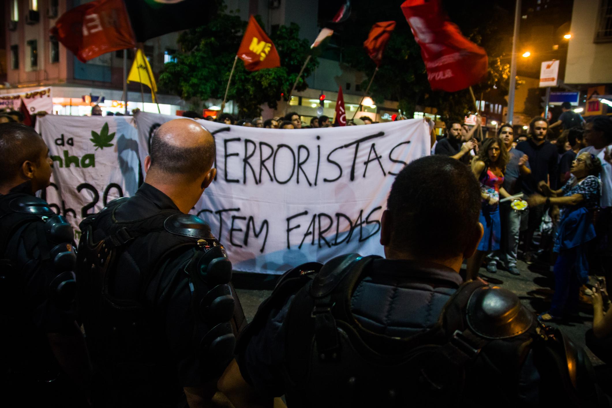 Após chegarem até as proximidades do Palácio Guanabara a polícia fechou a rua, impedindo que a manifestação chegasse ao seu destino. Alguns ativistas tentaram conversar com o comandante da operação para entender qual o motivo de mais essa limitação ao direito de se manifestar. No entanto, o tenente responsável não quis dar qualquer satisfação.