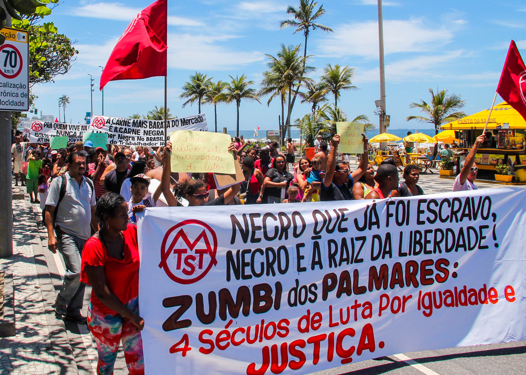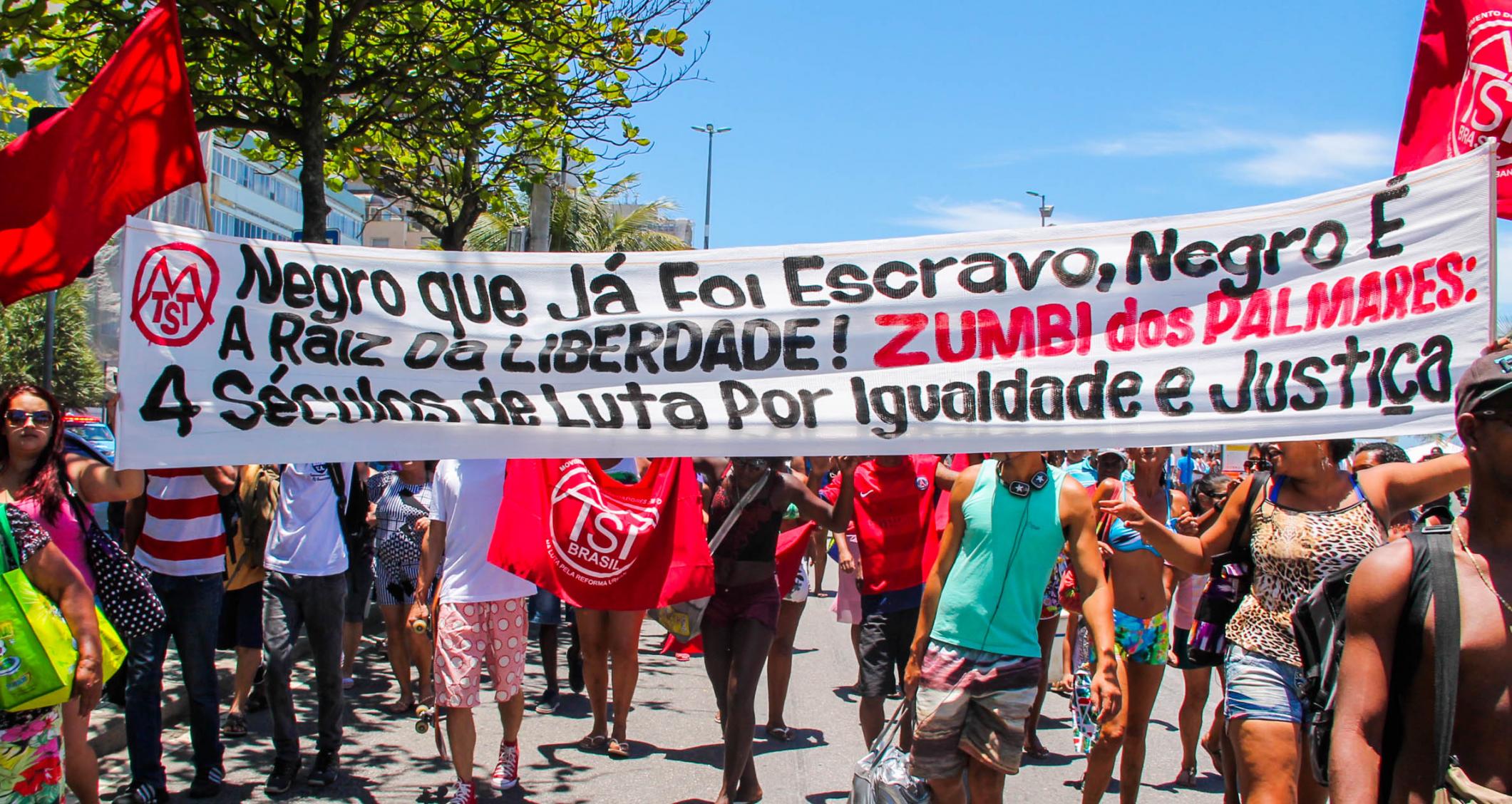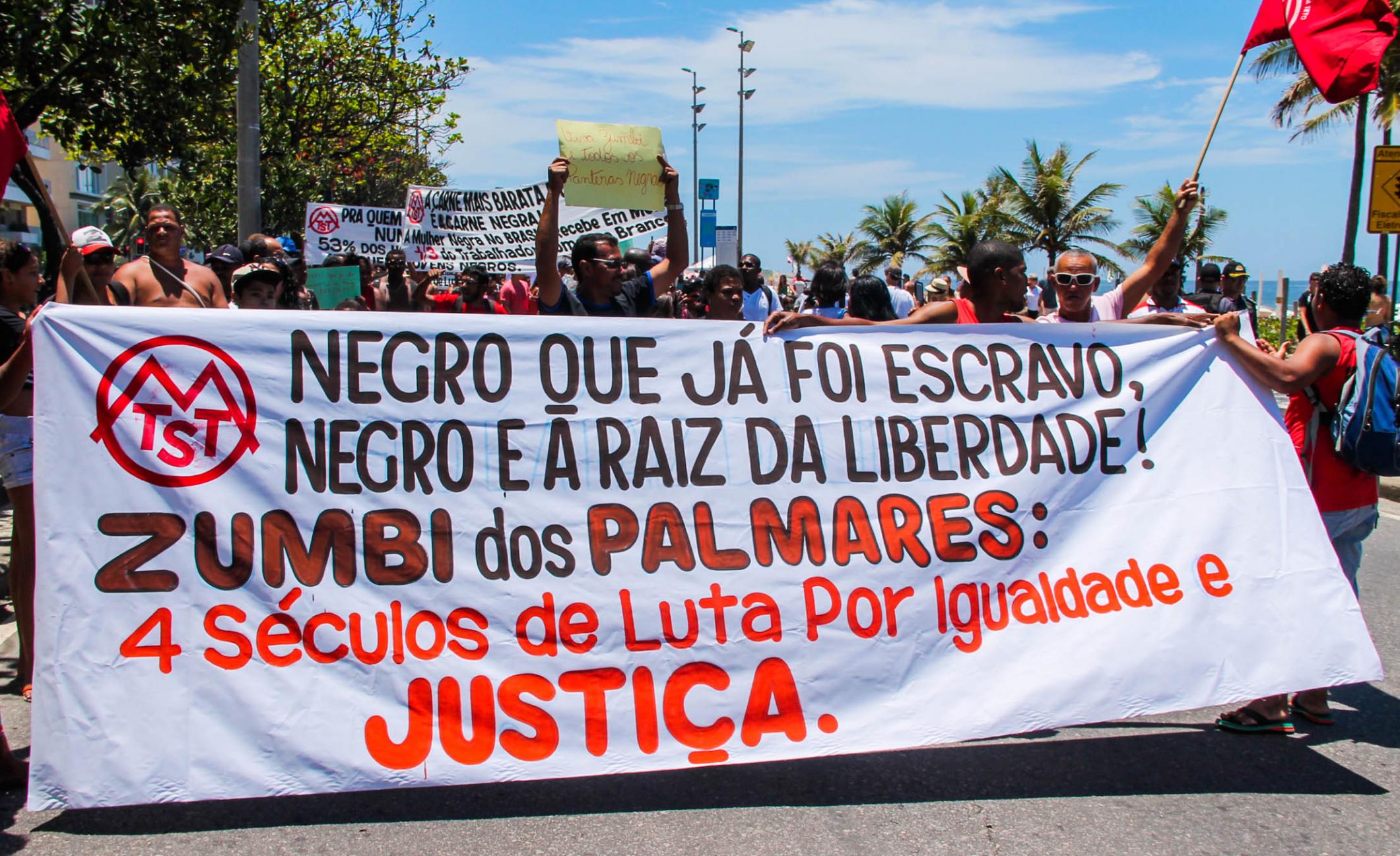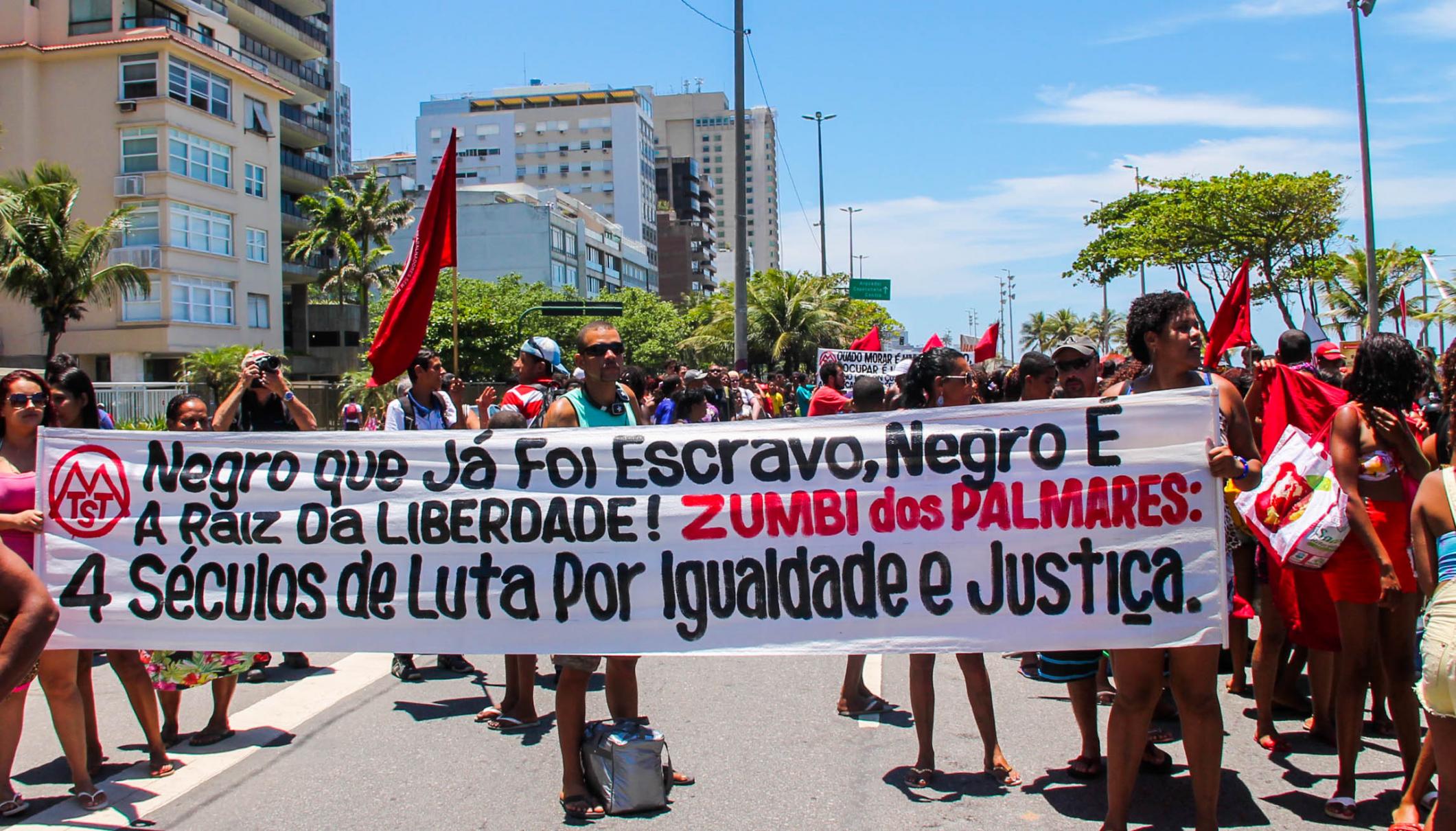 No dia 20 de novembro, dia da Consciência Negra, os Sem-Teto da ocupação Zumbi dos Palmares de São Gonçalo realizaram um ato no Leblon (considerado um dos metro-quadrado mais caros do mundo) lutar contra o racismo, quebrando as fronteiras que separam os ricos dos pobres.