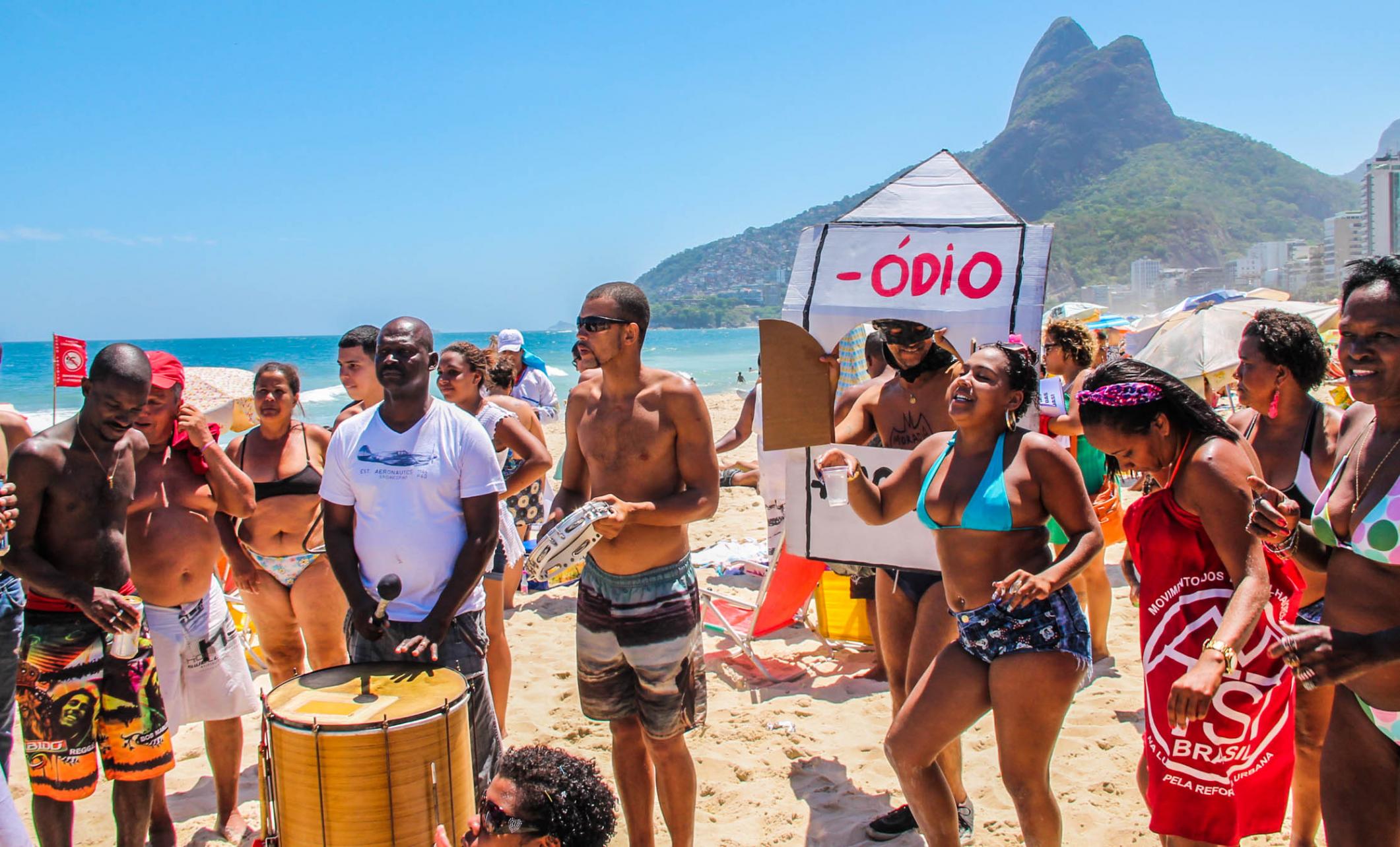 O clima era de festa, com roda de samba e musicas contra o racismo, isopor, quentinhas para o almoço e claro, muita farofa! Sem hipocrisia e muita alegria. Crianças, adolescentes e adultos se divertiam na água do mar. Para o almoço, todos tinham suas quentinhas e isopores trazidos de casa, enquanto sanduiches eram vendidos a R$ 10 nos quiosques e por ambulantes.