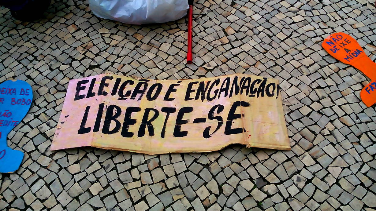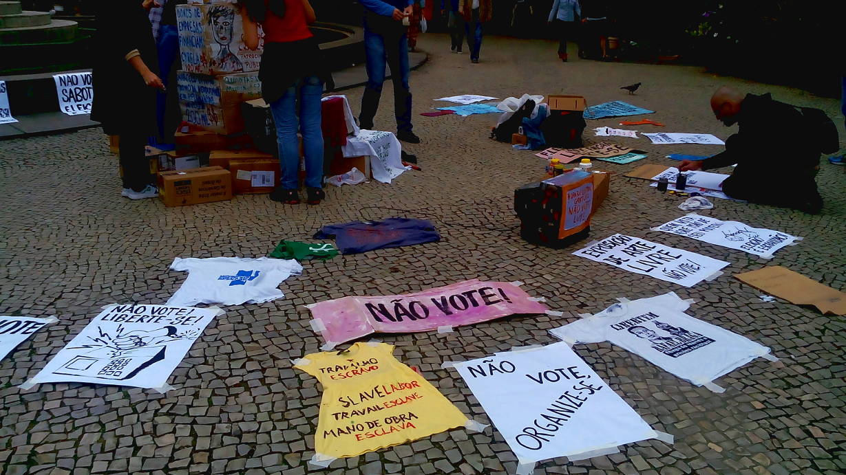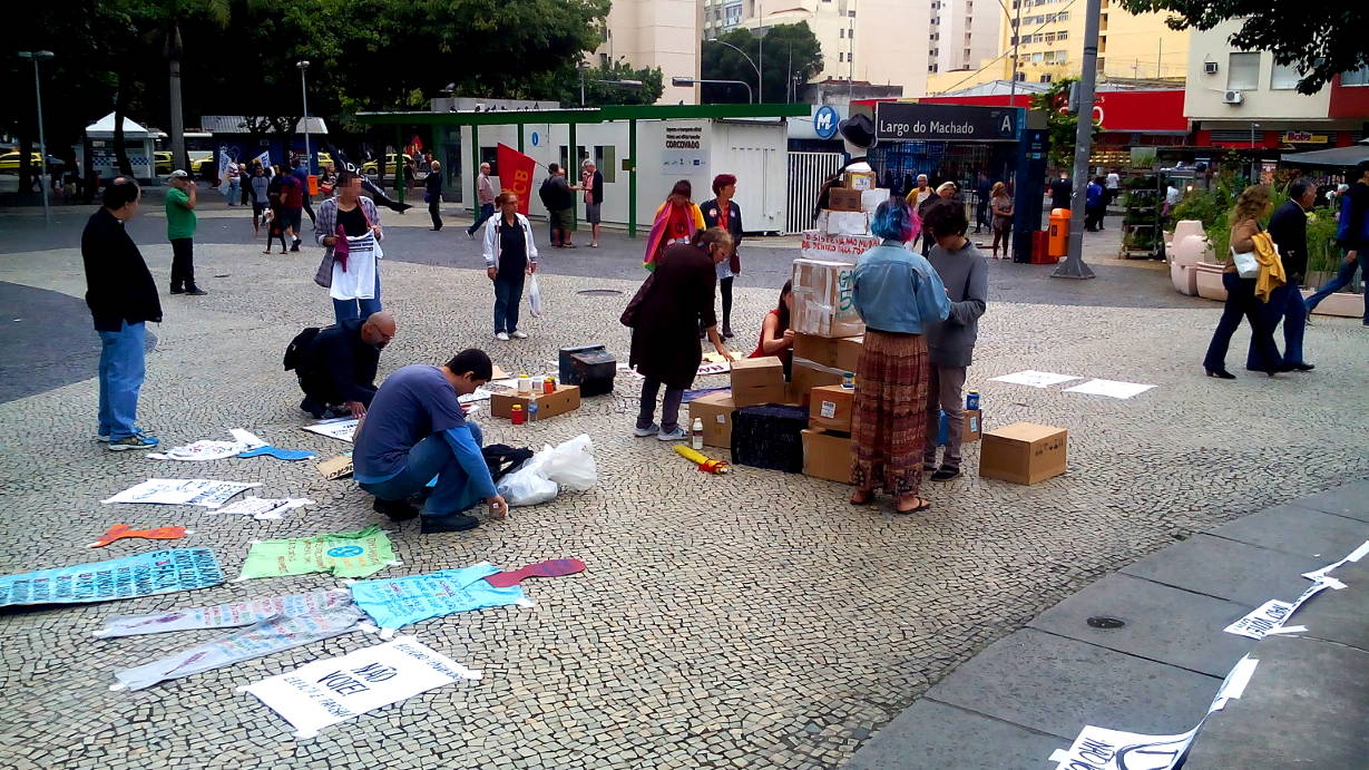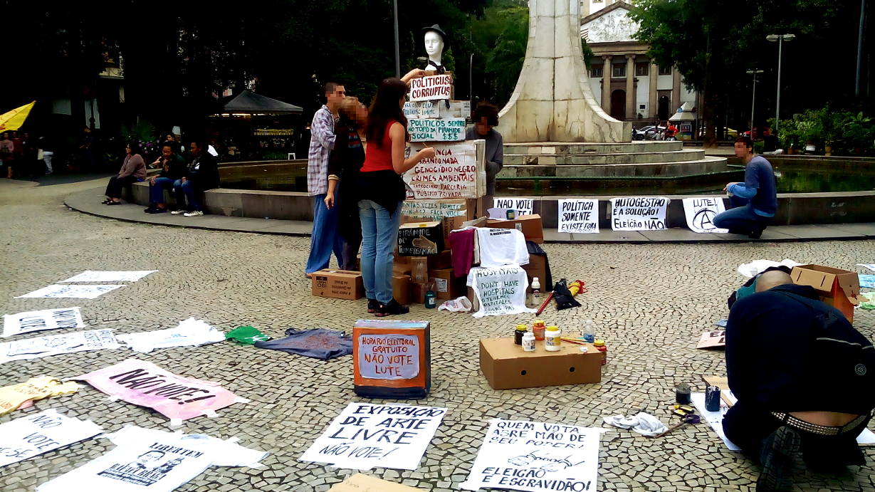 Entretanto, ontem não foi apenas dia para a população se defrontar com a triste realidade da democracia representativa falida. Ontem foi o dia de resistência popular. No Largo do Machado, a partir das 13 horas, ocorreu uma manifestação artística contra a farsa eleitoral.