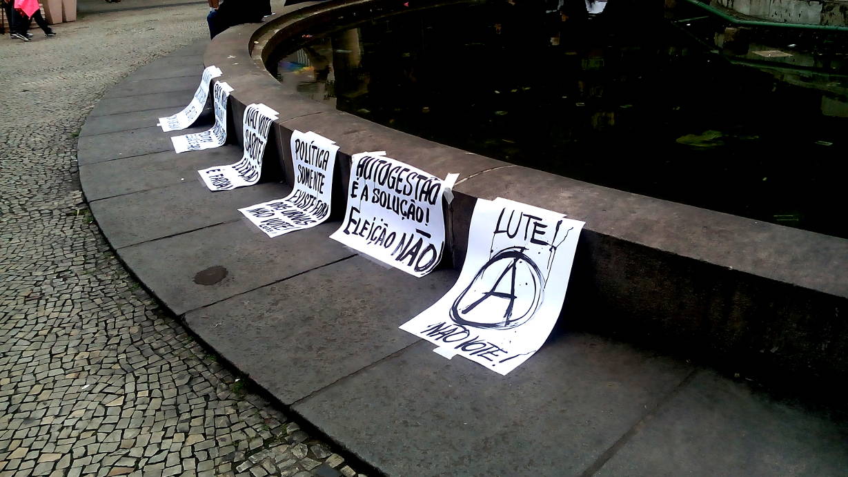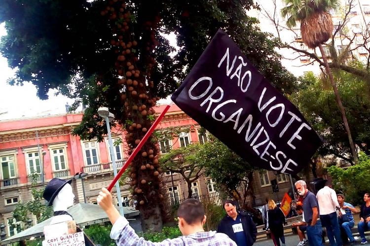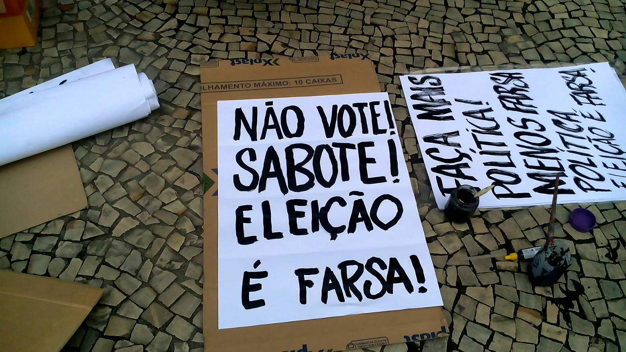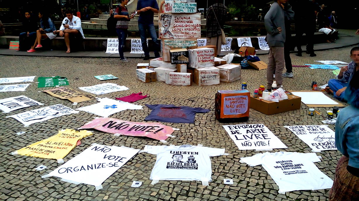 Entretanto, ontem não foi apenas dia para a população se defrontar com a triste realidade da democracia representativa falida. Ontem foi o dia de resistência popular. No Largo do Machado, a partir das 13 horas, ocorreu uma manifestação artística contra a farsa eleitoral.