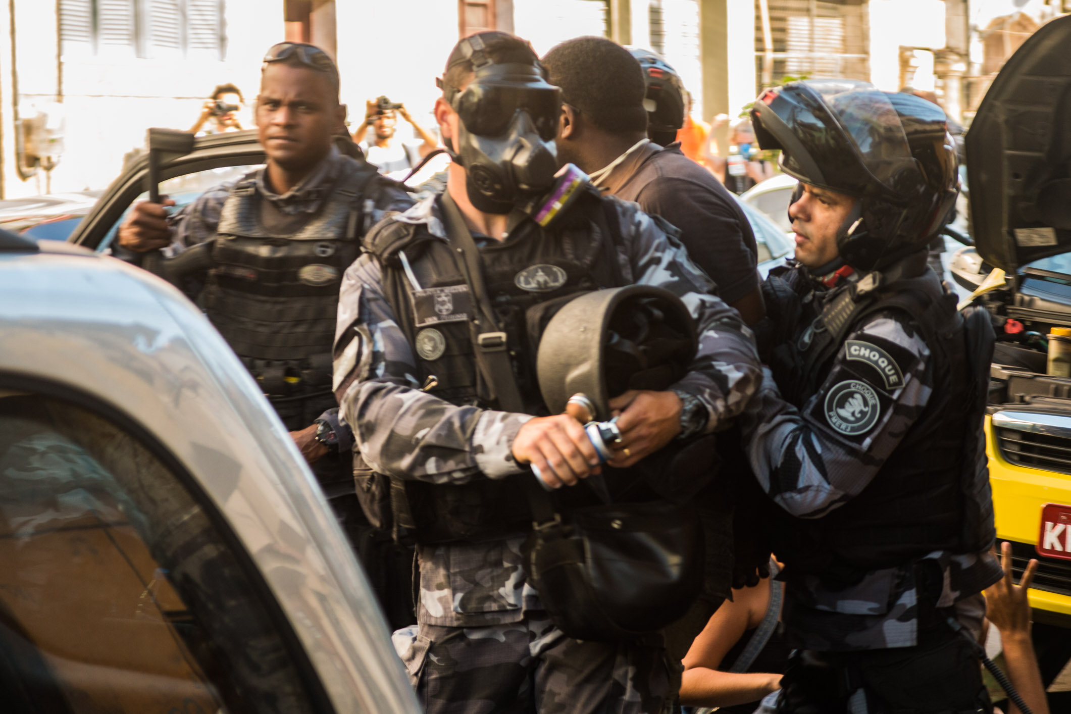 Um total de quase 50 manifestantes foram detidas e detidos no Catumbi. Enquanto a polícia fazia a detenção de 19 manifestantes, bombas e balas de borracha foram atiradas contra jornalistas e manifestantes que pediam a libertação. Uma advogada foi atingida na perna e teve que ser socorrida imediatamente.