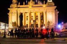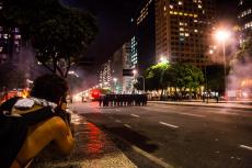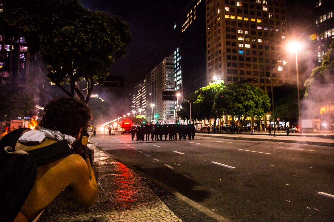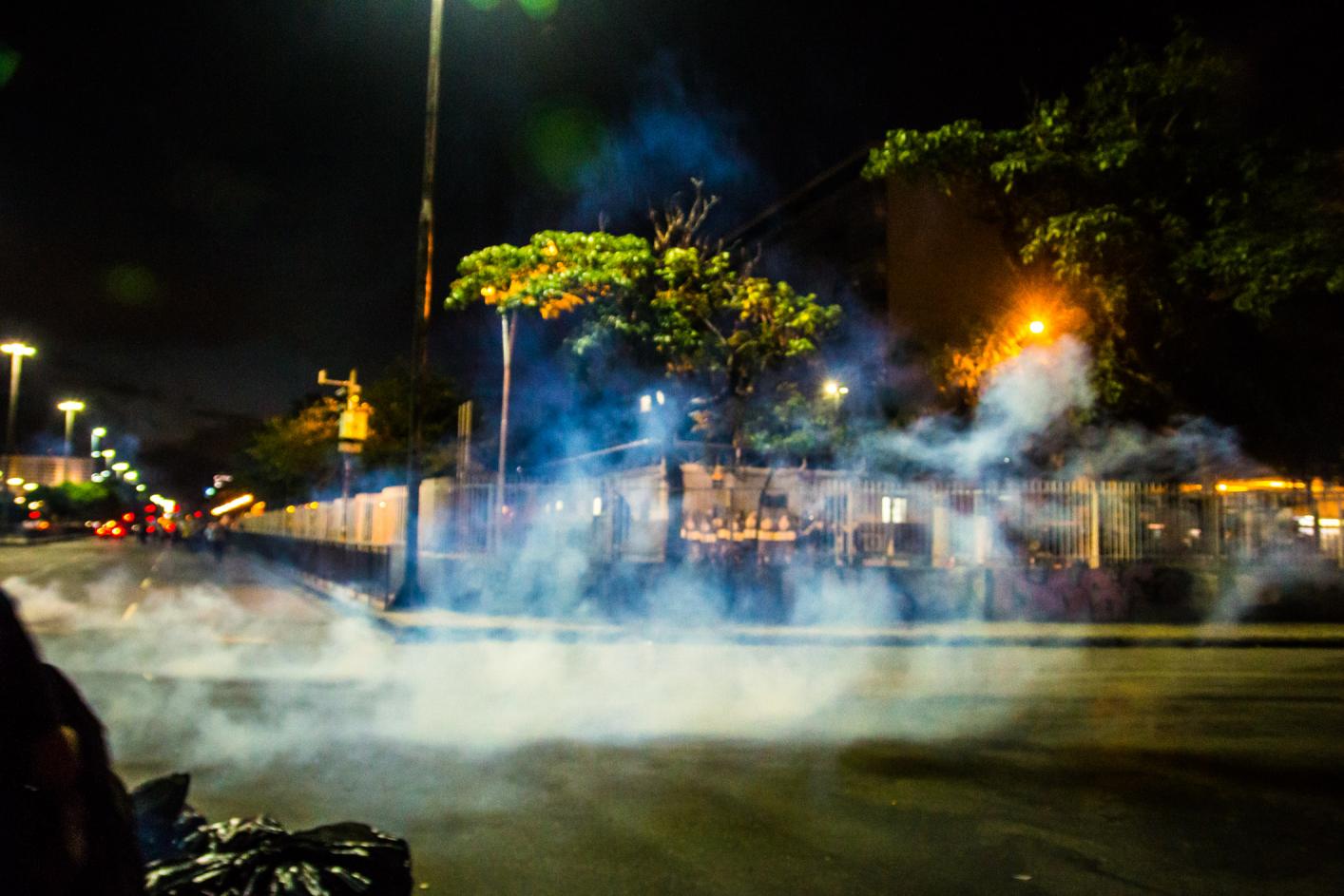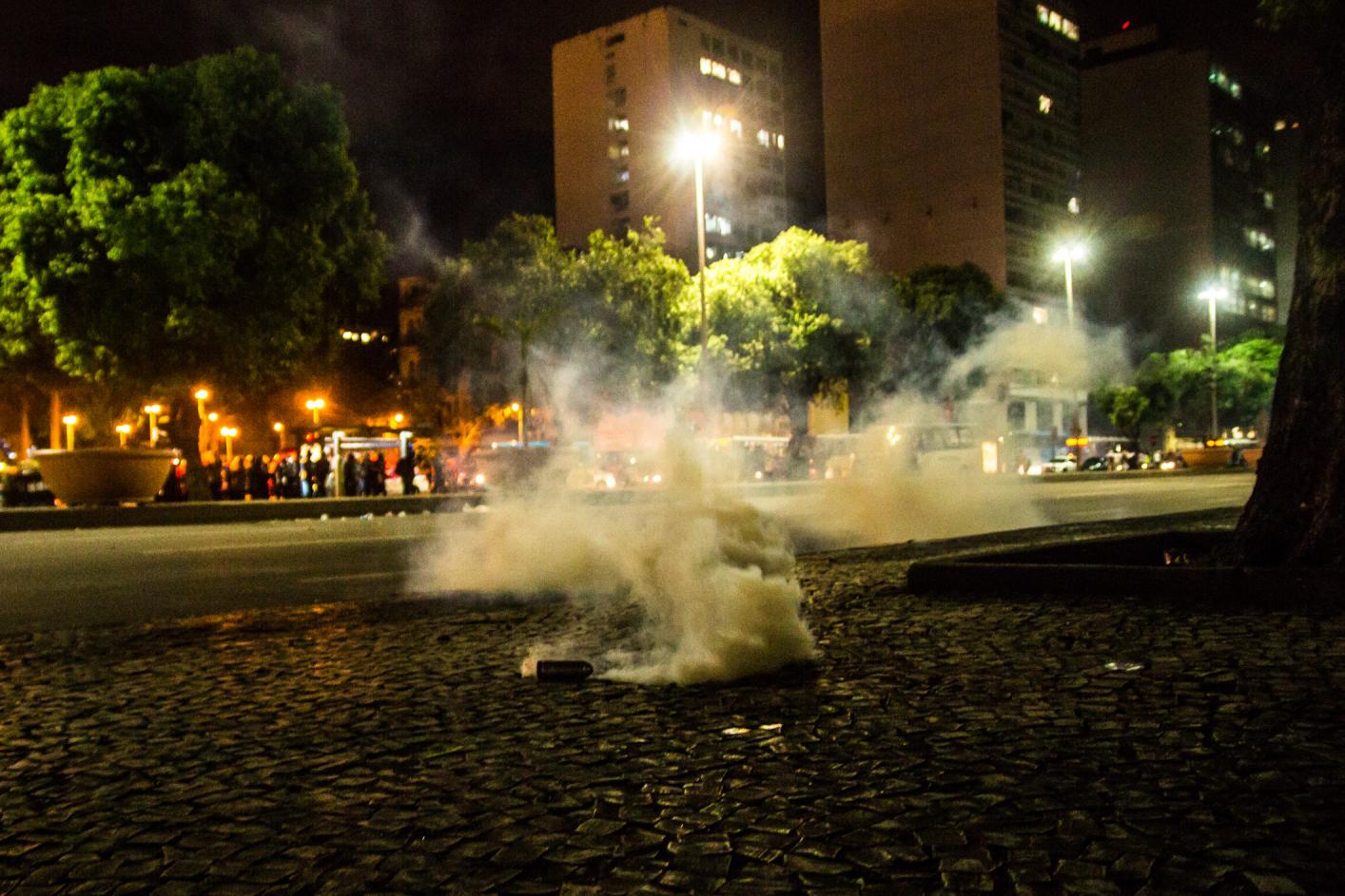 Passada a confusão entre os seguranças da CUT e manifestantes, a Guarda Municipal reiniciou ataques contra o protesto, atirando bombas de gás e efeito moral. O Choque também chegou logo depois. A manifestação foi sendo empurrada em direção a praça da Cinelândia.