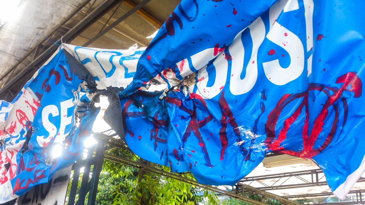 Nessa Quarta feira (29/03) alguns alunos se manifestaram contra toda essa situação e atearam fogo à faixa colocada pela dirigência da rede na porta da escola. Escreveram em nota: