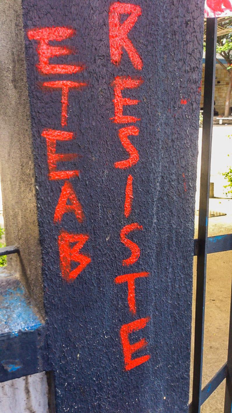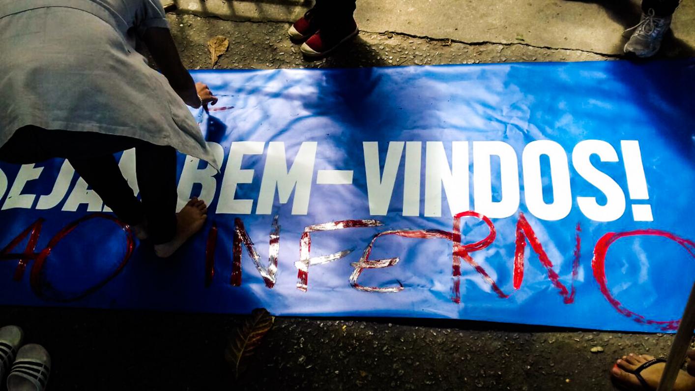 "Ontem (29/03) nós, estudantes da FAETEC Adolpho Bloch, manifestamos nossa raiva e indignação por meio da Ação Direta. Protestamos contra a terceirização, que é a escravidão moderna, contra a precarização da educação pública e contra a demissão repentina de TODOS os funcionários terceirizados, alguns há mais de um ano sem receber e sem direitos. Ainda estamos no ano letivo de 2016, professores recebem parcelado, agora temos essa demissão em massa e a dirigência da rede ainda tem a cara de pau de colocar uma faixa com os dizeres "Sejam Bem Vindos". NÃO QUEREMOS MAIS MAQUIAGEM NA PORTA DA ESCOLA PARA PARECER QUE ESTÁ TUDO CERTO, POIS NÃO ESTÁ!!!"
