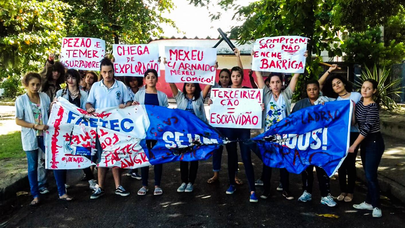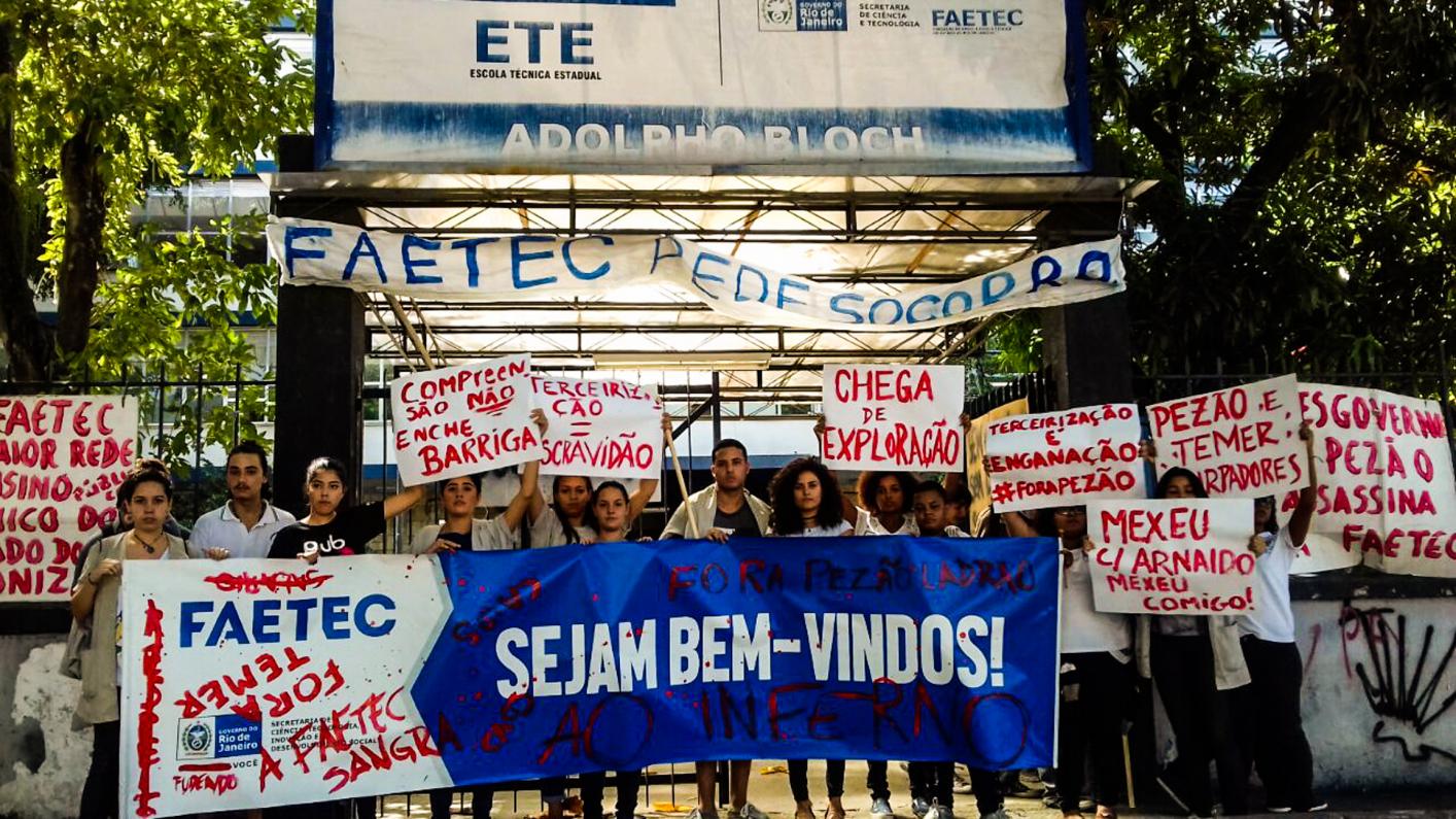 Rio de Janeiro-RJ: Estudantes da FAETEC protestam contra demissão de terceirizados