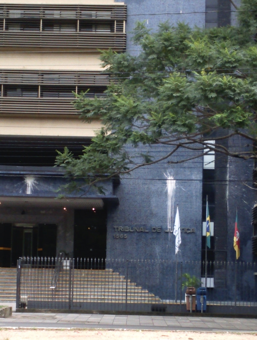 O Sábado 6 de maio, poucos dias depois de que ficamos sabendo da absurda sentença, quando a noite caia, caminhamos em direção do Tribunal de Justiça de Porto Alegre e atiramos contra ele bombas de tinta.