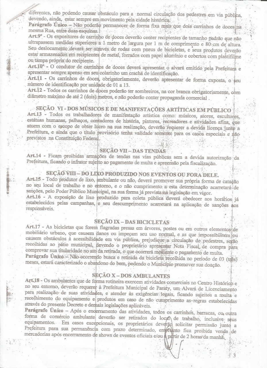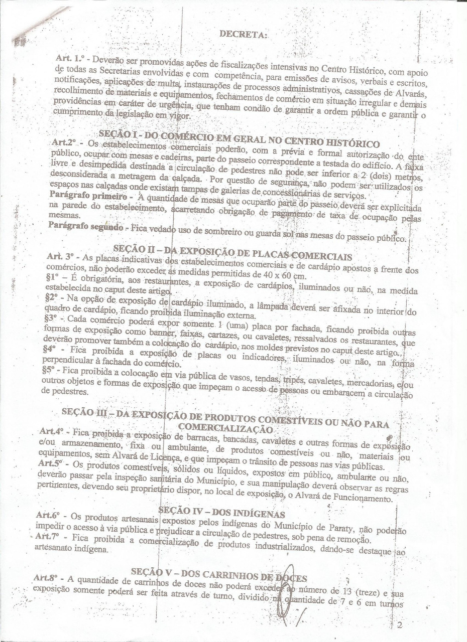 No que se refere aos e às indígenas (seção IV), o decreto ainda prevê que os produtos por eles e elas expostos não podem "impedir a via pública", o que na realidade só abre precedente e legitima o que já vem acontecendo com uma certa rotina na cidade, que é a repressão e o confisco dos seus produtos. O decreto também deixa claro que "fica proibida a comercialização de produtos industrializados" pelos indígenas, o que só reforça ainda mais o esteriótipo romantizado e fetichizado dessa minoria que luta para sobreviver.