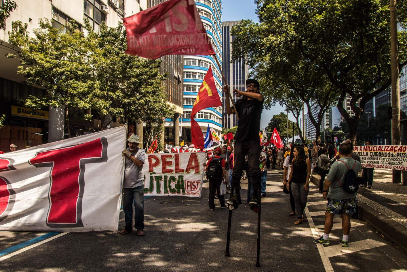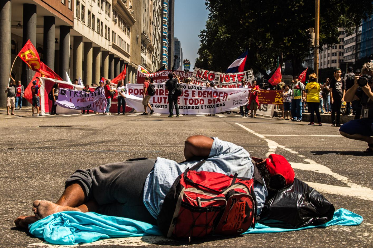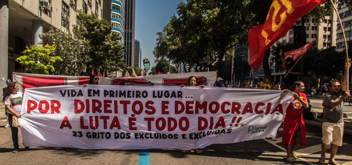 No último dia 7, logo após o desfile militar tradicional do dia da independência, manifestantes saíram às ruas no anual Grito dos Excluídos, reunindo diversos movimentos sociais e pautas, como o direito à moradia, o fim da violência policial nas favelas, a desmilitarização da PM, a liberdade de Rafael Braga, entre outras.