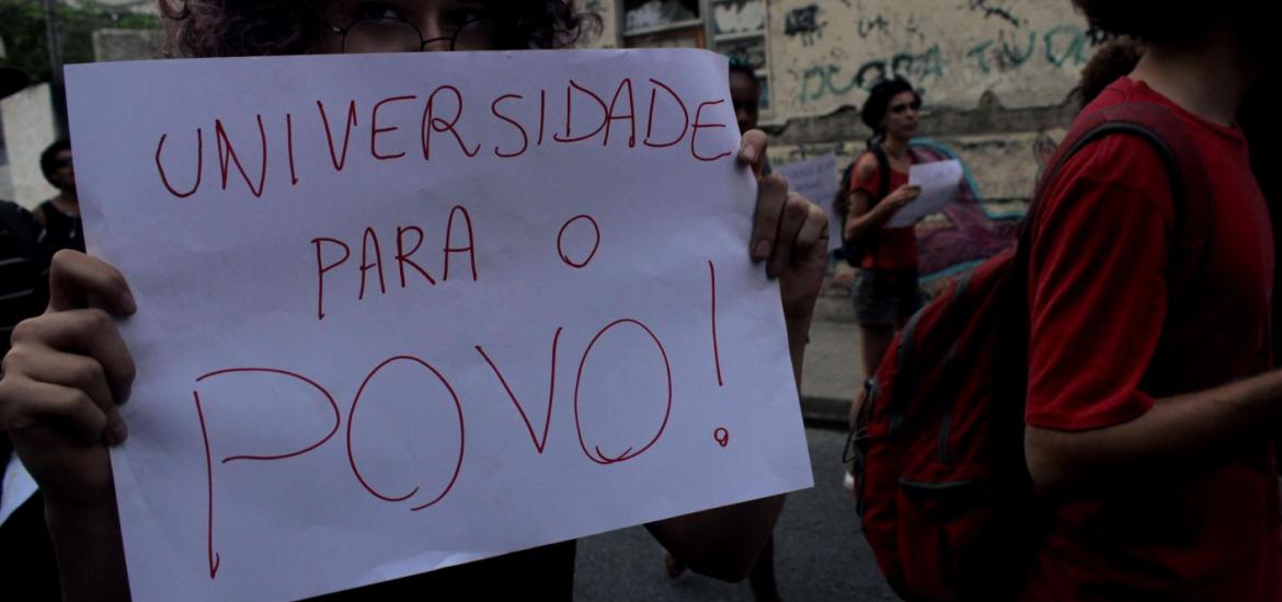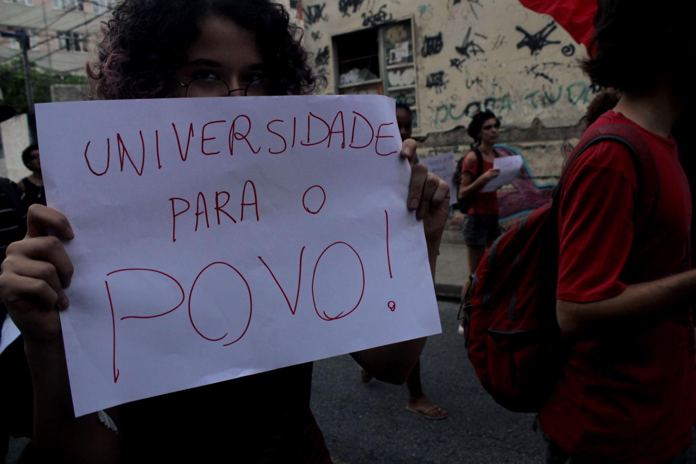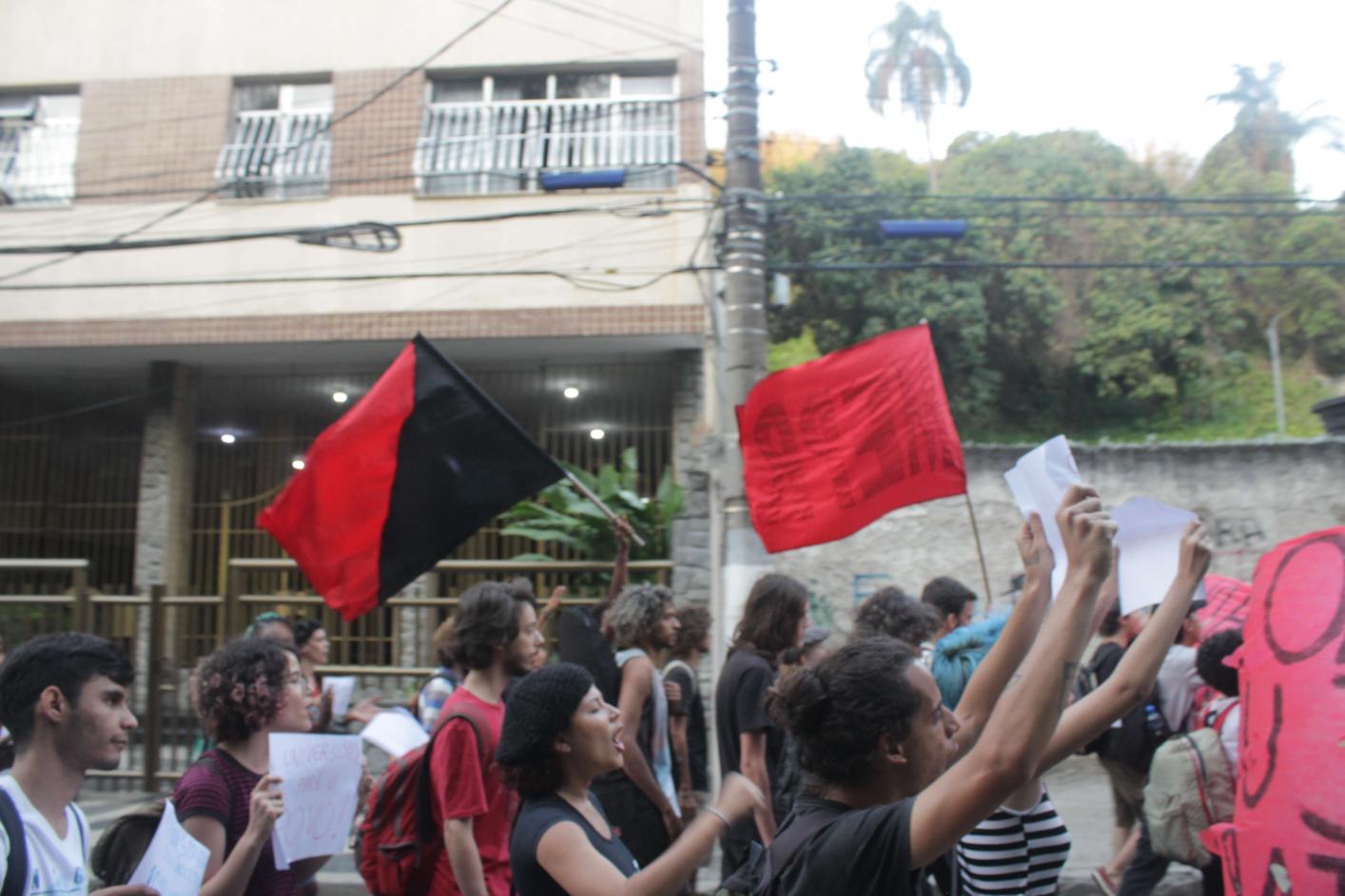 Na tarde desta terça-feira, dia 10, dezenas de estudantes da Universidade Federal Fluminense saíram do campus Gragoatá, próximo à Cantareira, com cartazes, bandeiras, e entoando palavras de ordem contra o reitor devido a cortes de vagas na moradia da Universidade.