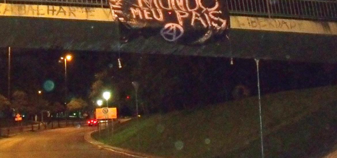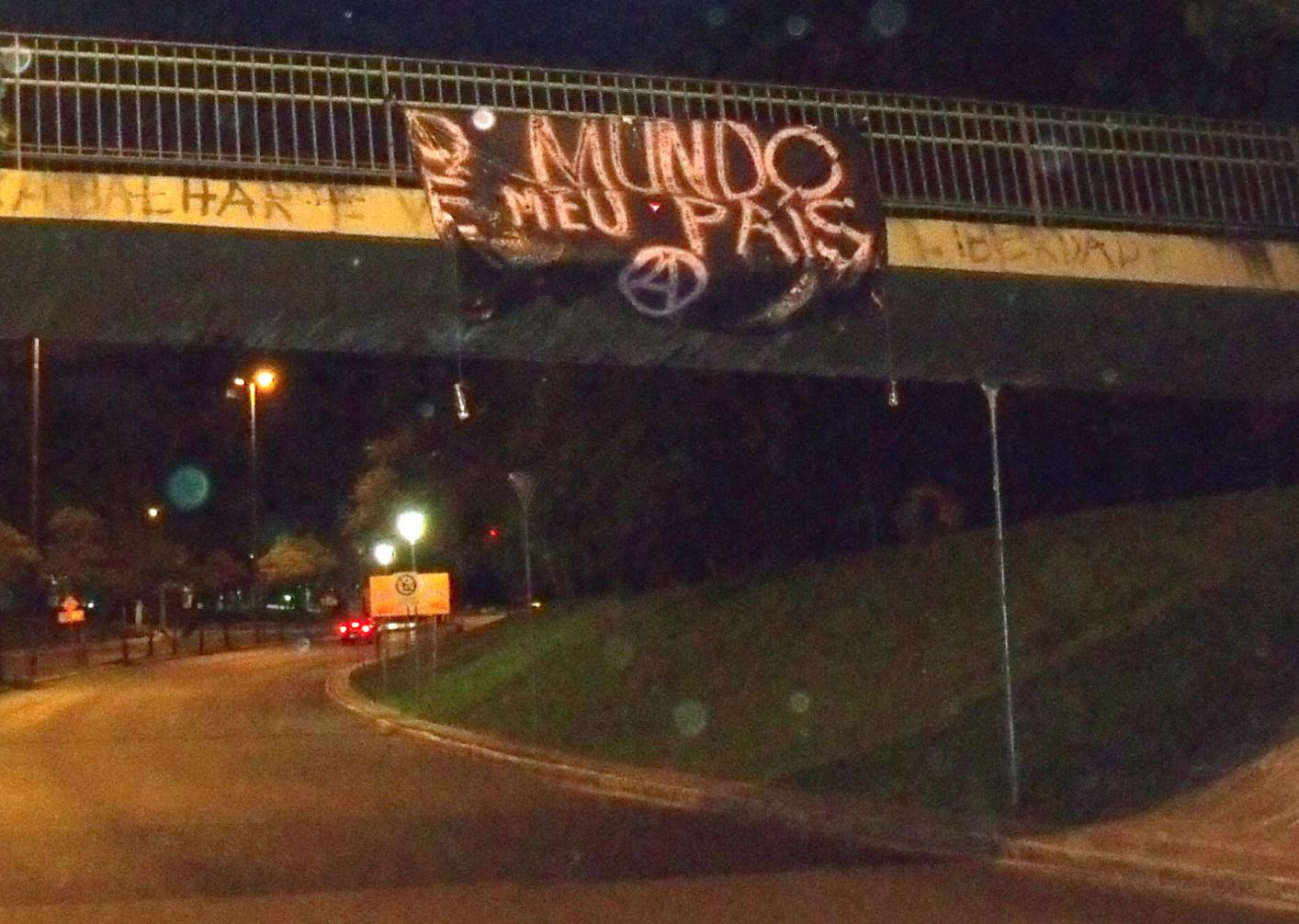 Hoje esticamos uma faixa em uma movimentada avenida de Porto Alegre com os dizeres "O Mundo é Meu País!". Queremos lembrar a todas as pessoas que nenhum país, novo ou antigo, será a solução de nossos problemas ou nos dará a liberdade que queremos!  Pelo contrário, mais fronteiras restringem ainda mais a liberdade das pessoas. Principalmente em um país fundado com base em noções bairristas e eurocêntricas.
