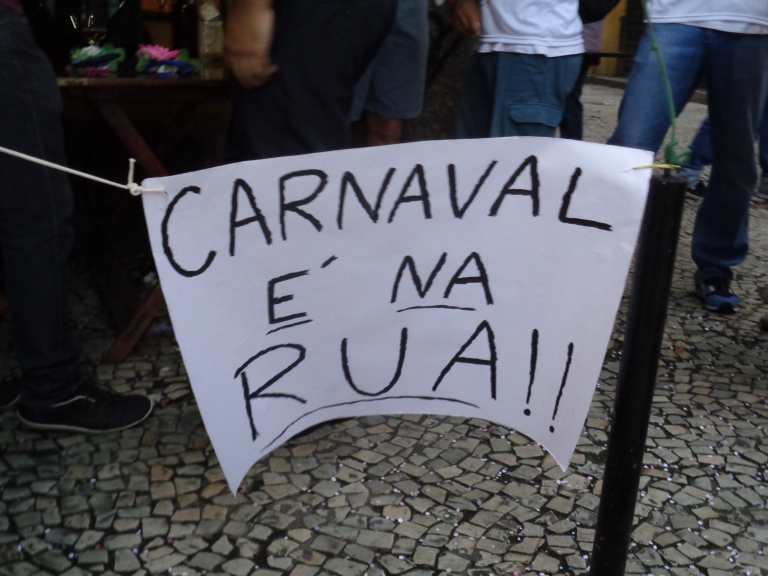 Às 18h dessa quarta-feira 7 de fevereiro, a banda já estava lá esquentado os tamborins para mais uma edição do Bloco da Ceguinha, um evento crítico-recreativo tradicional de iniciativa da categoria serventuária (servidora pública do Poder Judiciário do Estado do Rio de Janeiro). Mas o evento conta ainda com a participação de pessoas de diversos setores da classe trabalhadora. Trata-se também duma forma de resistência cultural de incentivo ao Carnaval de rua, respeitoso, democrático, acessível a todo mundo. Uma resistência avessa a qualquer forma de elitização dessa importante festa popular, que hoje (em muitos eventos) fica confinada em clubes granfinos e sambódromos com ingressos caros. Entendemos como negativa a realização de baile de Carnaval a portas fechadas: evento acrítico e meramente recreativo, isolado da rua e do povo.