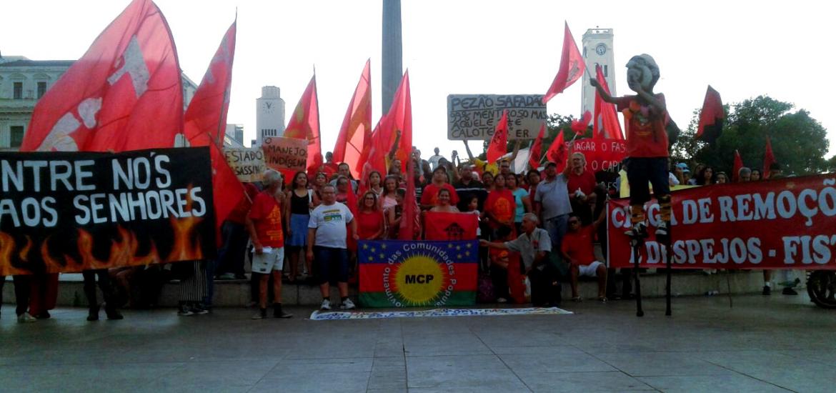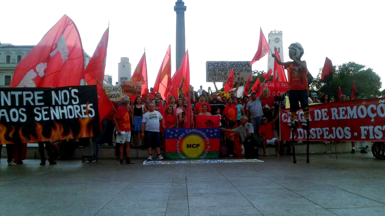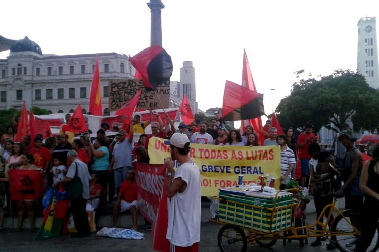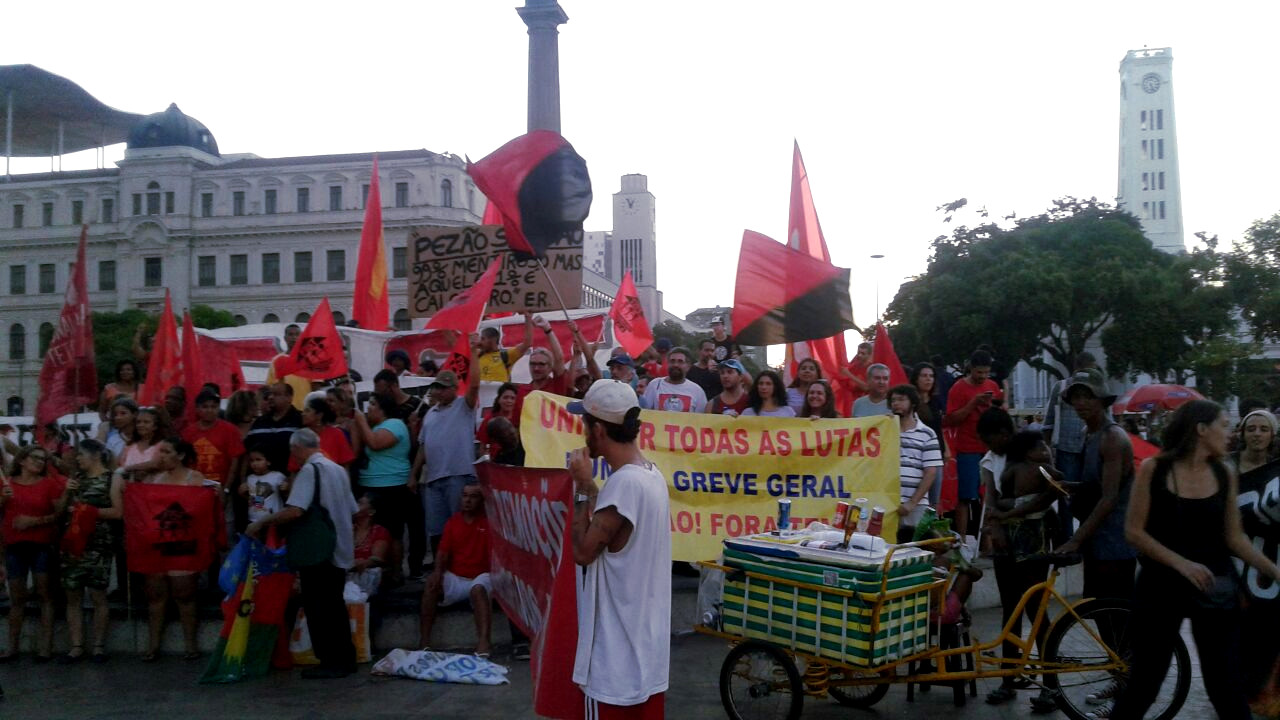 Manifestantes se concentraram na Praça Mauá, próximos ao Museu do Amanhã, por volta das 15 horas e denunciaram a intervenção federal que ocorre na cidade e as políticas elitistas do governo, que visam a retirada de direitos da classe trabalhadora.