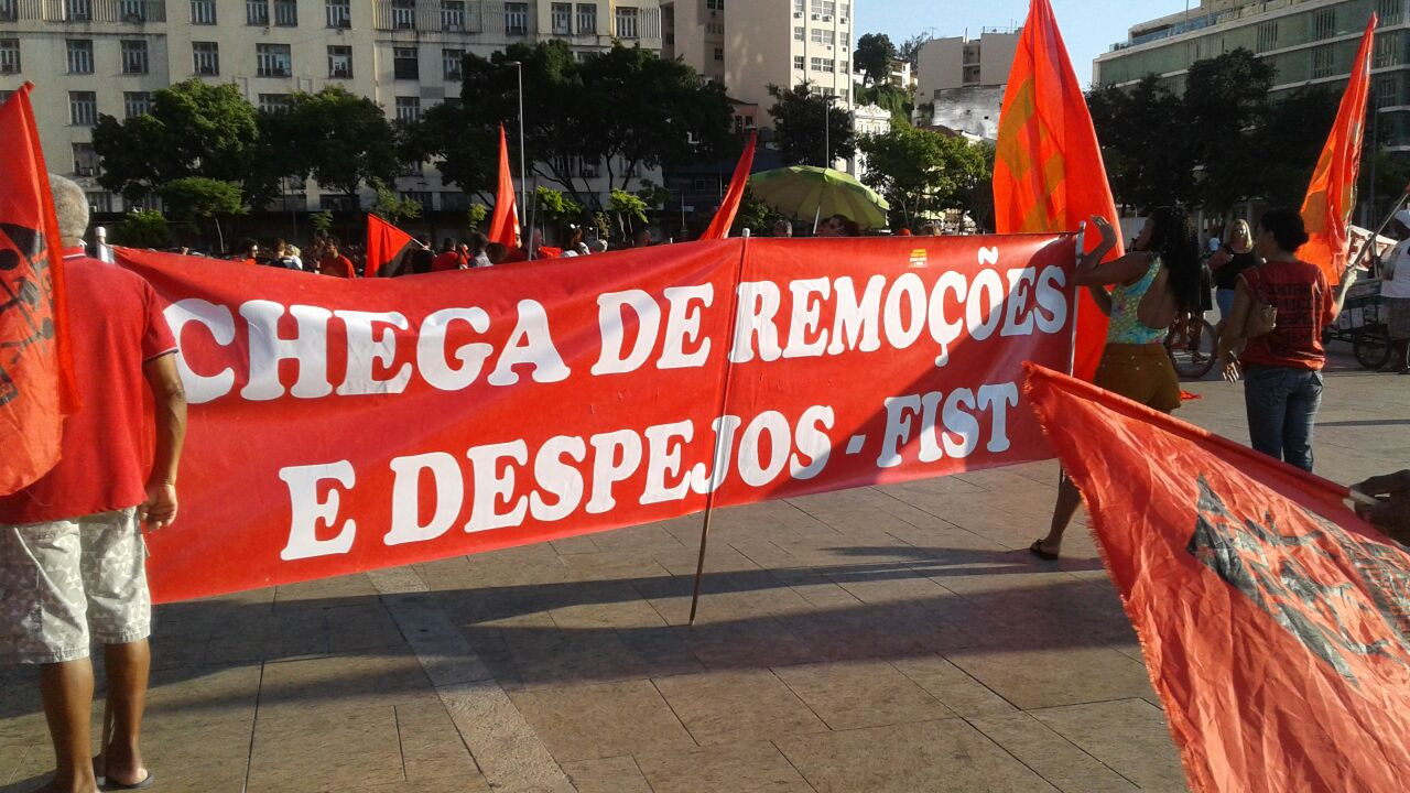 Neste primeiro de maio, manifestantes reuniram-se na praça Mauá e fizeram discursos contra as reformas que ameaçam direitos adquiridos pela classe trabalhadora, contra a intervenção militar no Rio, que vem aumentando ainda mais a situação de violência que vivem os moradores da periferia, pelo direito à moradia, com forte presença de militantes da FIST, pelo direito dos povos indígenas e contra as remoções forçadas que ocorrem em ocupações pela cidade.