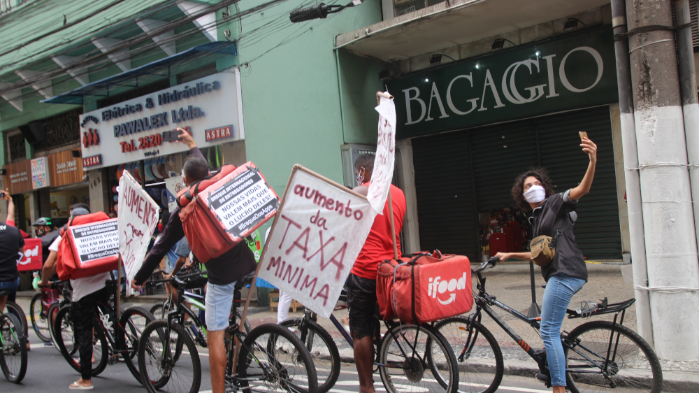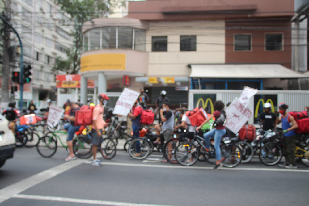 No Rio a manifestação começou por volta das 9 horas, com forte aparato policial. Apesar disso, o ato conseguiu sair e os entregadores foram até Botafogo, na sede de uma das empresas de aplicativo.