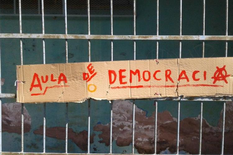 A minha resposta foi dizer que existem outras formas de democracia, que democracia é mais que um conceito, e é sim uma prática ampla demais, e a diretora na ocasião nem eleita tinha sido, pois era indicada pela Secretaria de Educação. Outros estudantes responderam também ao professor que estava ali insatisfeito com a situação e defendendo a direção. Se os estudantes que fazem as escolas respirarem e dão vida depois para aquele ambiente não se sentem representados e nem à vontade com o tratamento pessoal e de certa forma político que estavam tendo, estamos longe de qualquer ideal democrático nessa escola.