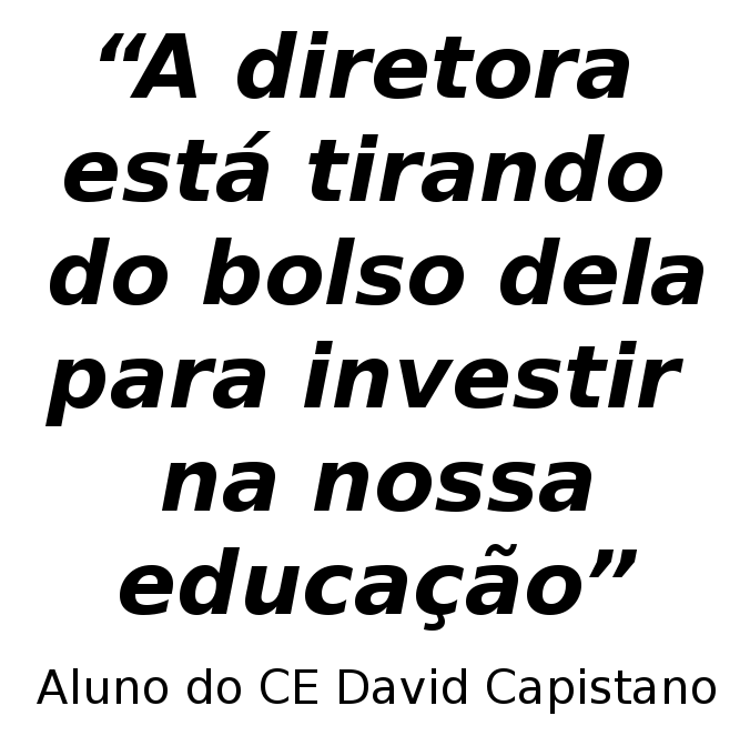 “No segundo dia a diretora veio de sala em sala falando que greve não é arruaça […] querendo proibir todo mundo, e ficou na porta do colégio para ninguém fazer. Eu acho isso um absurdo! Ela não pode negar o nosso direito!” - denunciou Aluno do CE Machado de Assis