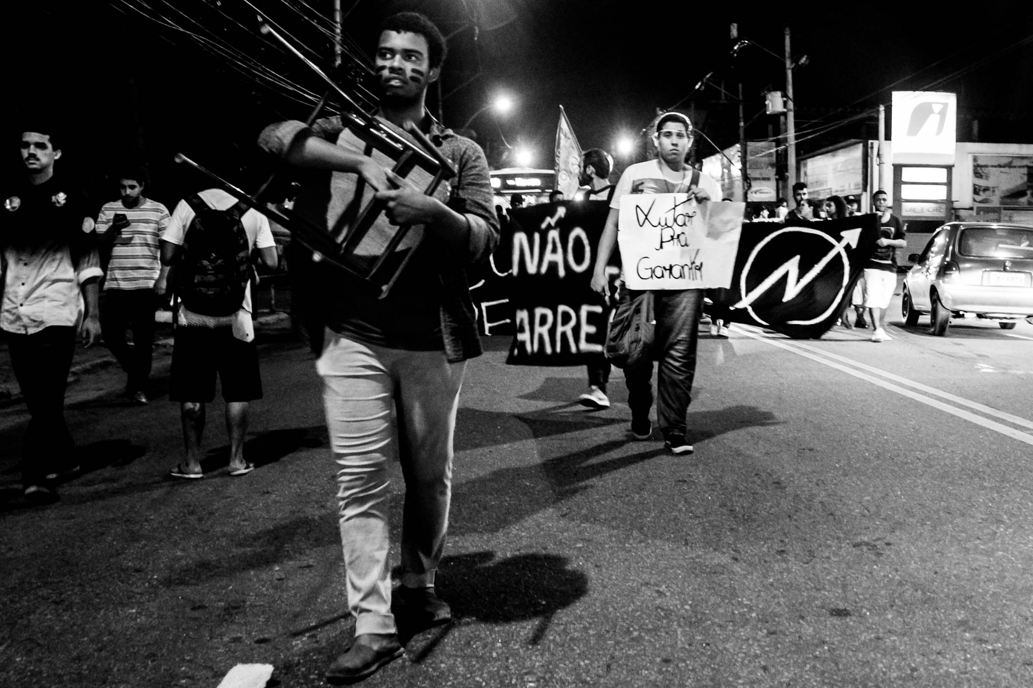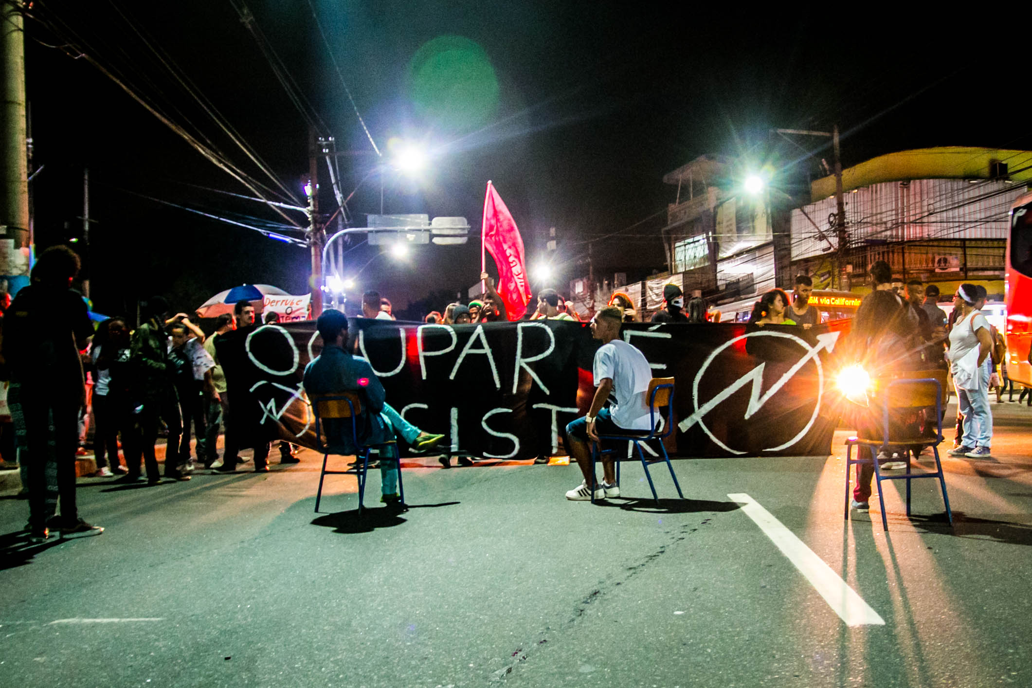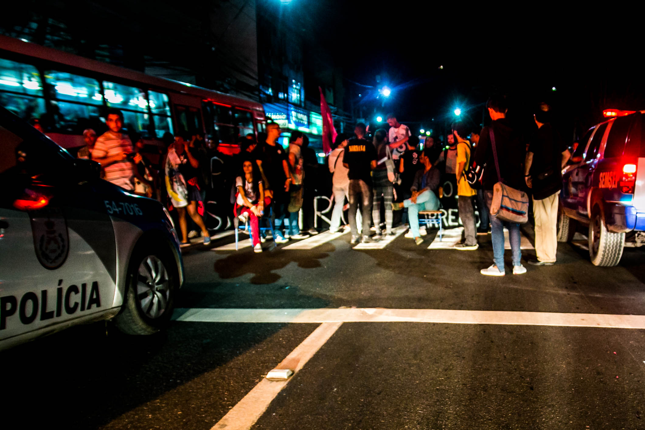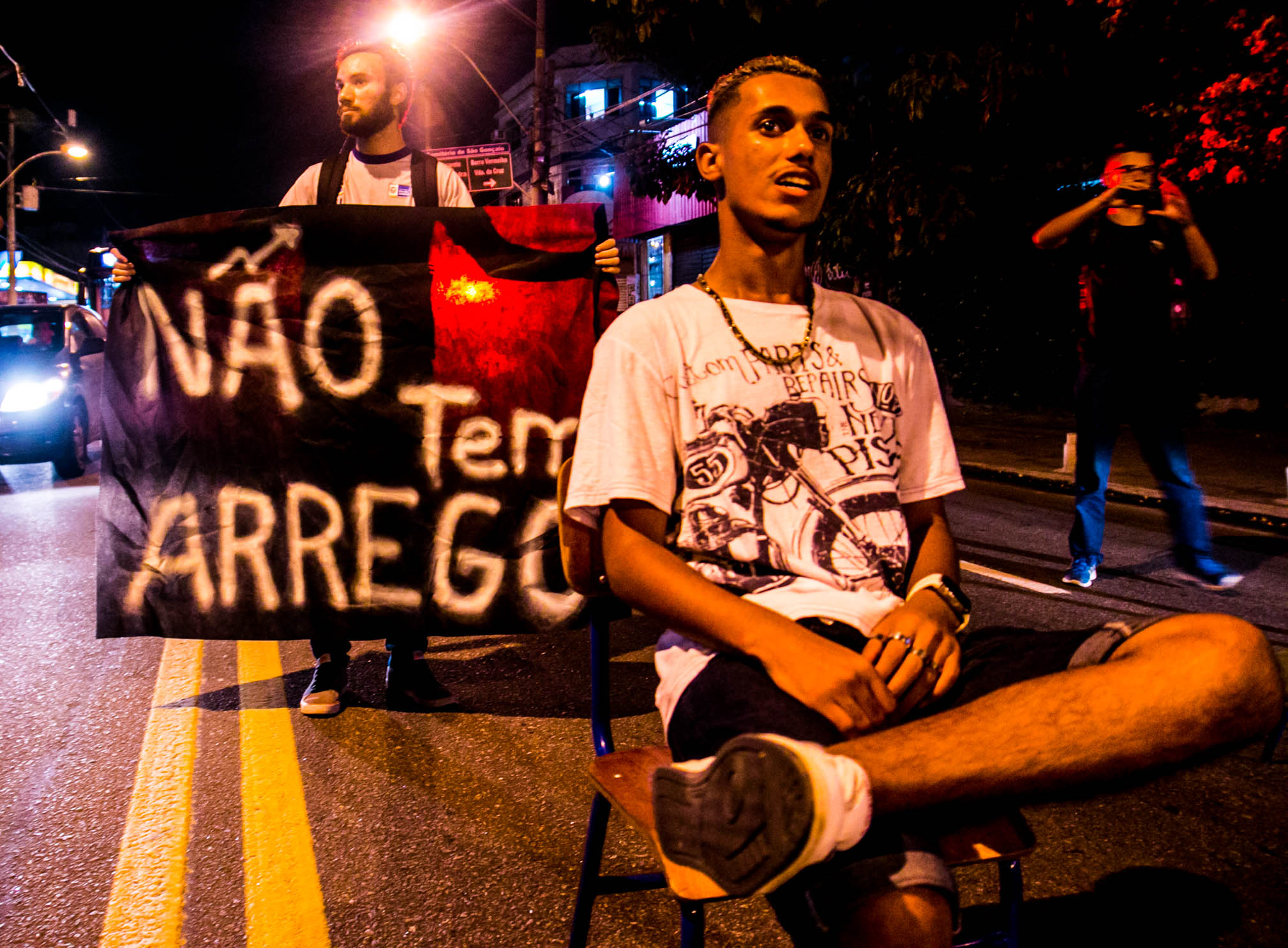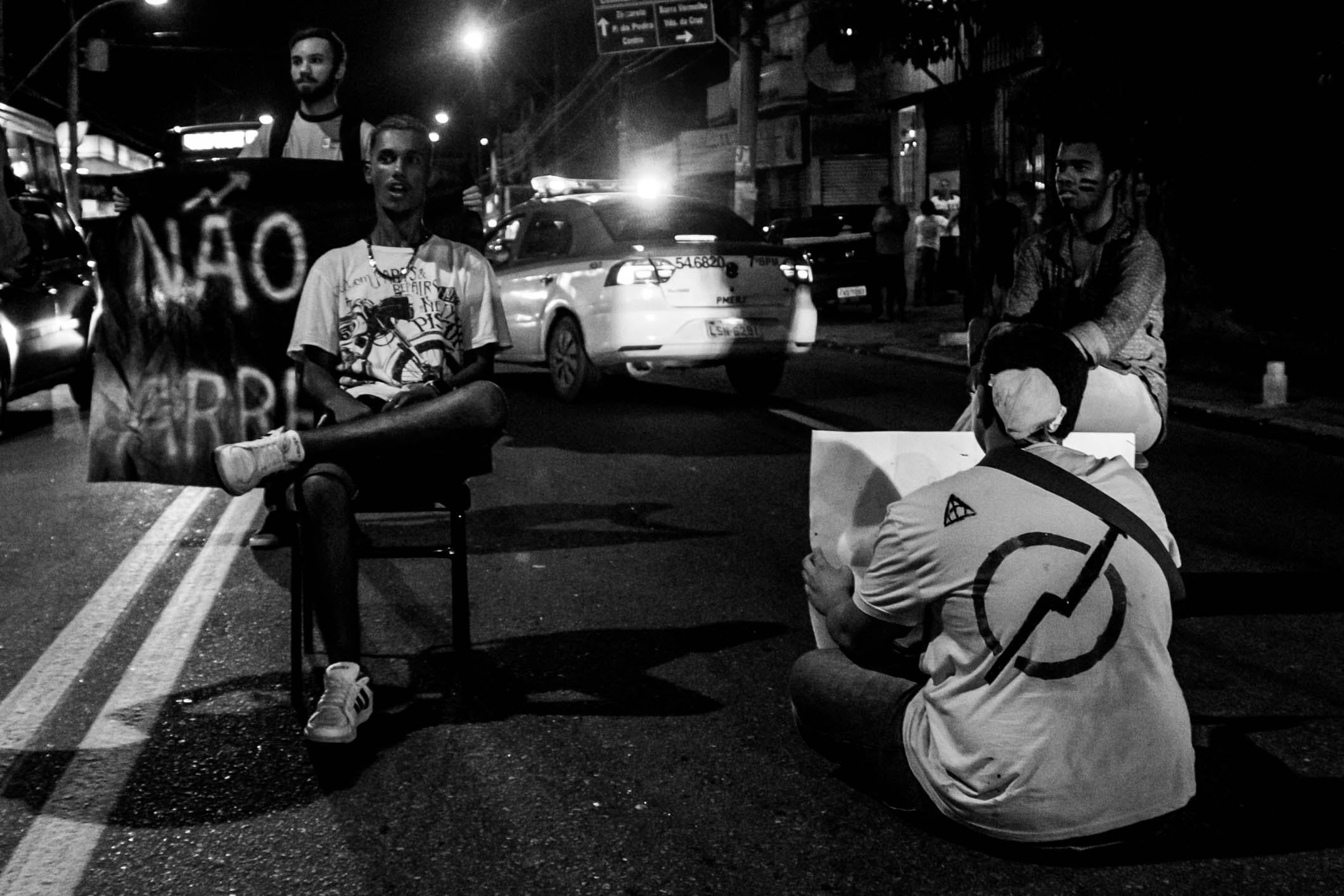 O ato de São Gonçalo se iniciou próximo à Faculdade de Formação de Professores (FFP) da UERJ e seguiu até a Prefeitura da cidade. Os estudantes fecharam quase toda a pista, permitindo que os carros passassem por apenas uma faixa.