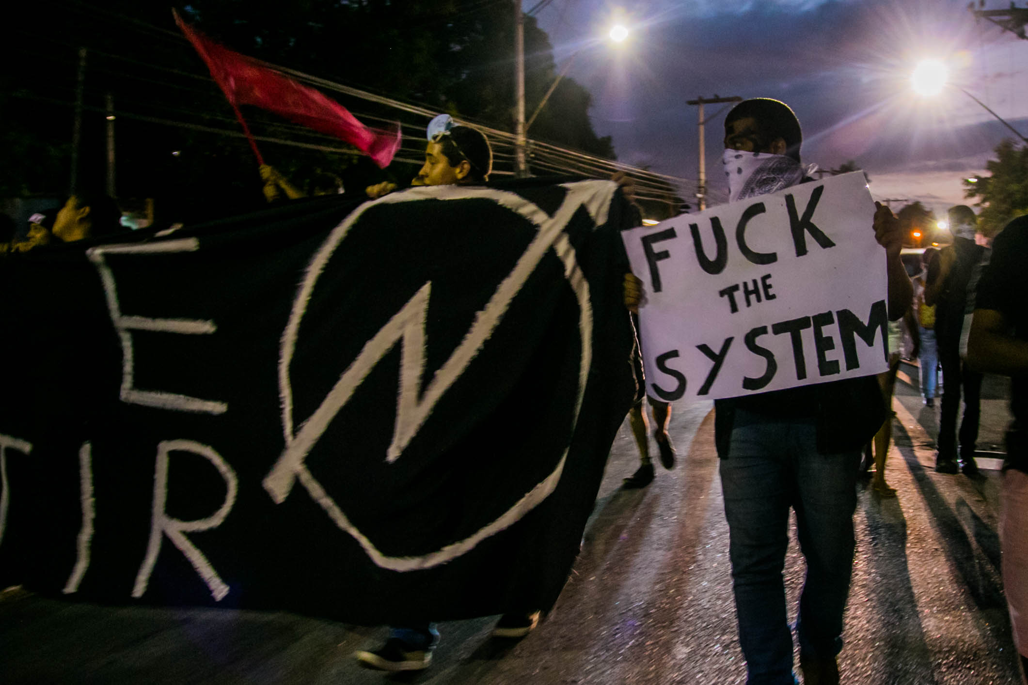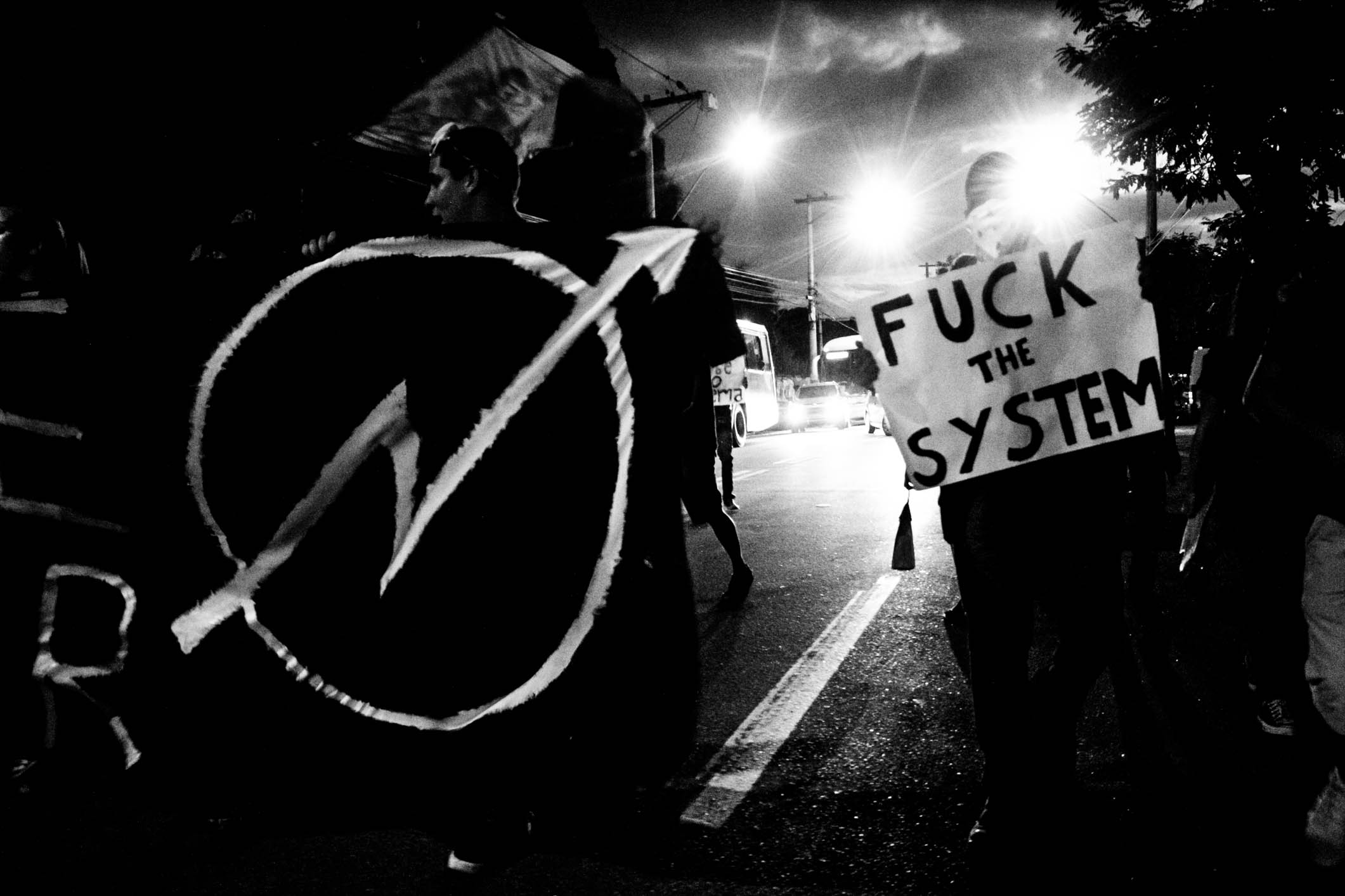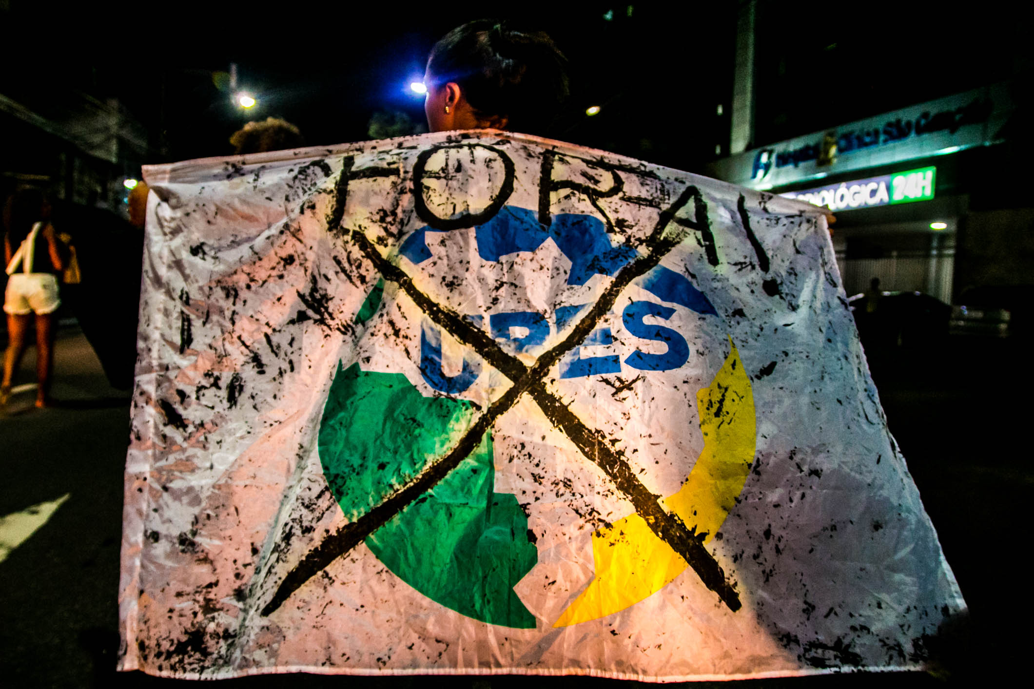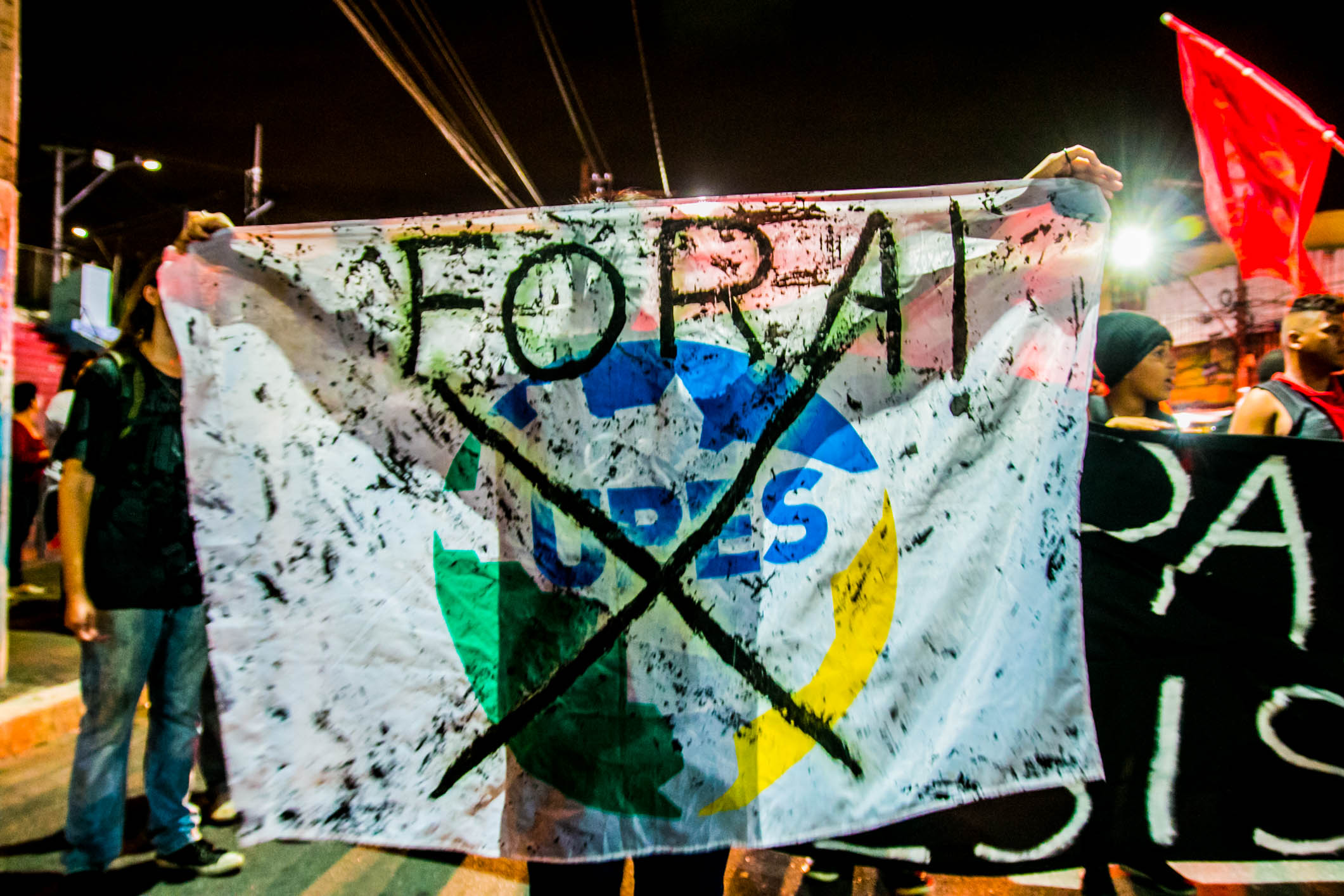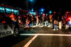 O ato de São Gonçalo se iniciou próximo à Faculdade de Formação de Professores (FFP) da UERJ e seguiu até a Prefeitura da cidade. Os estudantes fecharam quase toda a pista, permitindo que os carros passassem por apenas uma faixa.