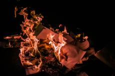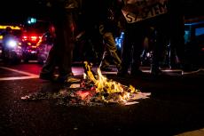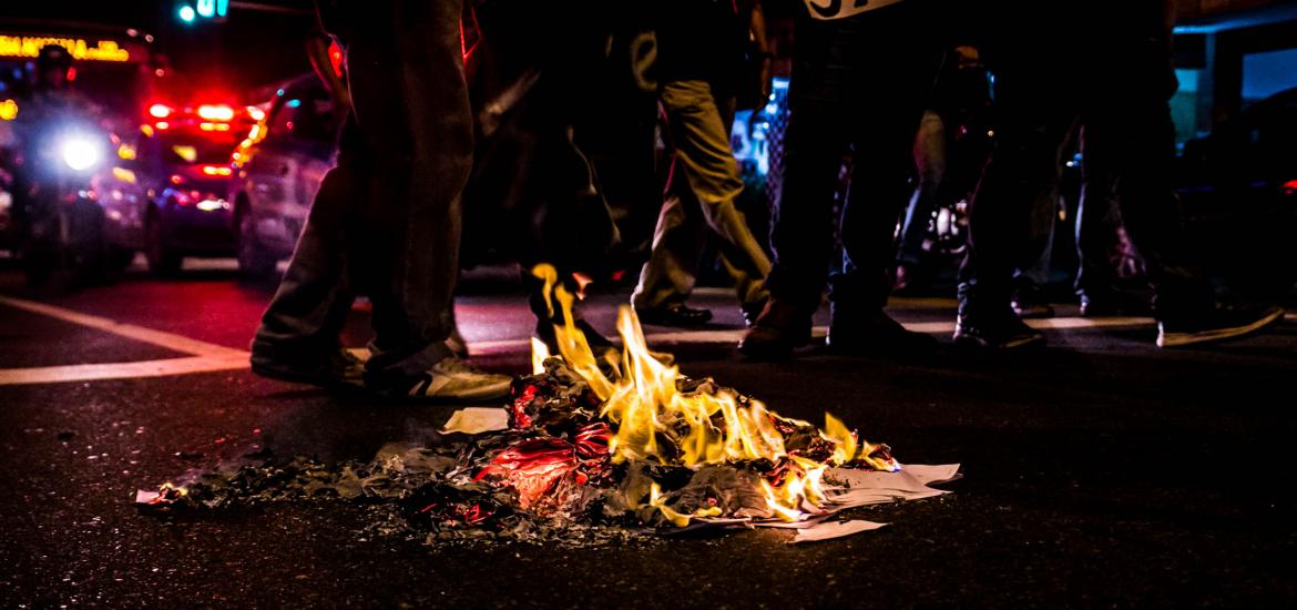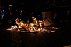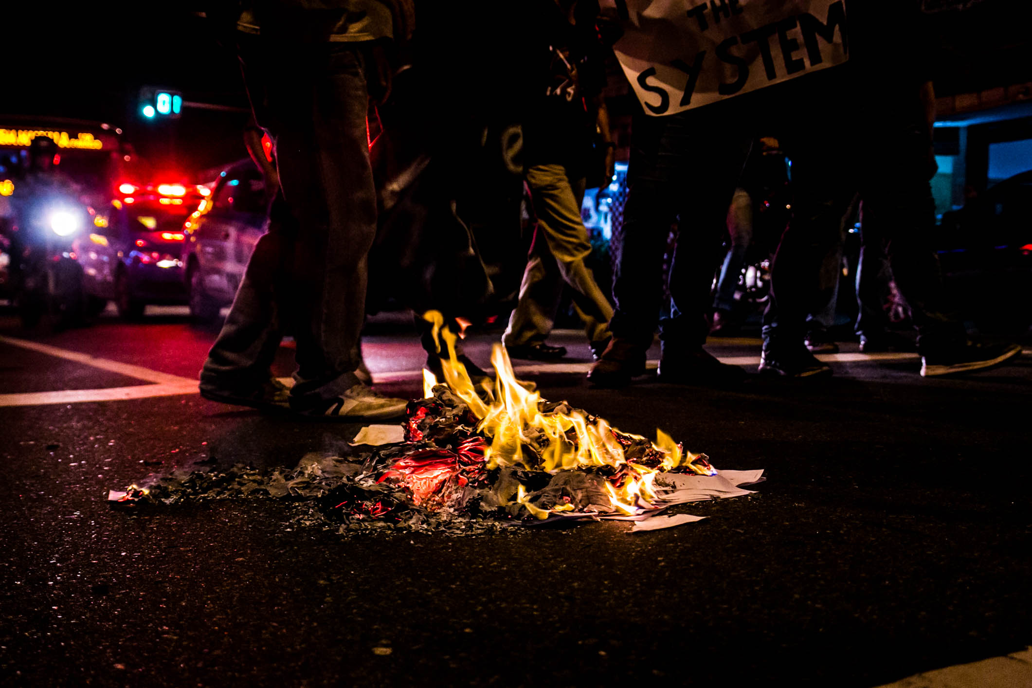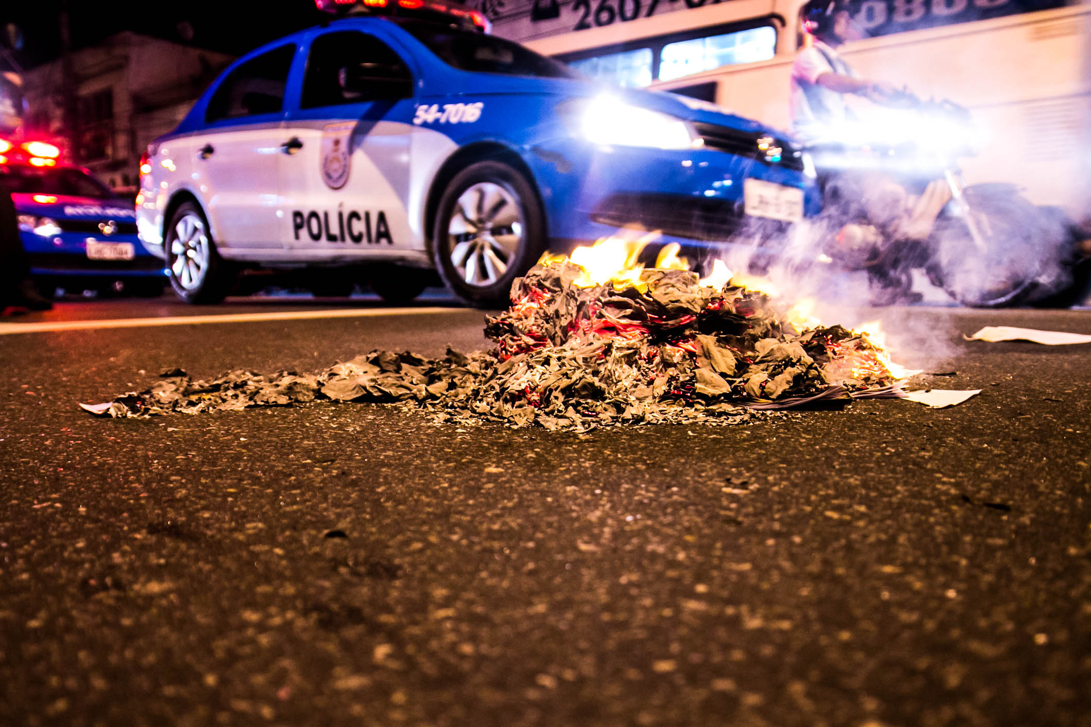 Durante o percurso, os estudantes queimaram provas do SAERJ. O SAERJ é uma prova que avalia o desempenho das escolas para diferenciar o envio de verbas. As escolas com melhores rendimentos acabam recebendo um envio de verba maior e as com menor rendimento recebem ainda menos verbas.