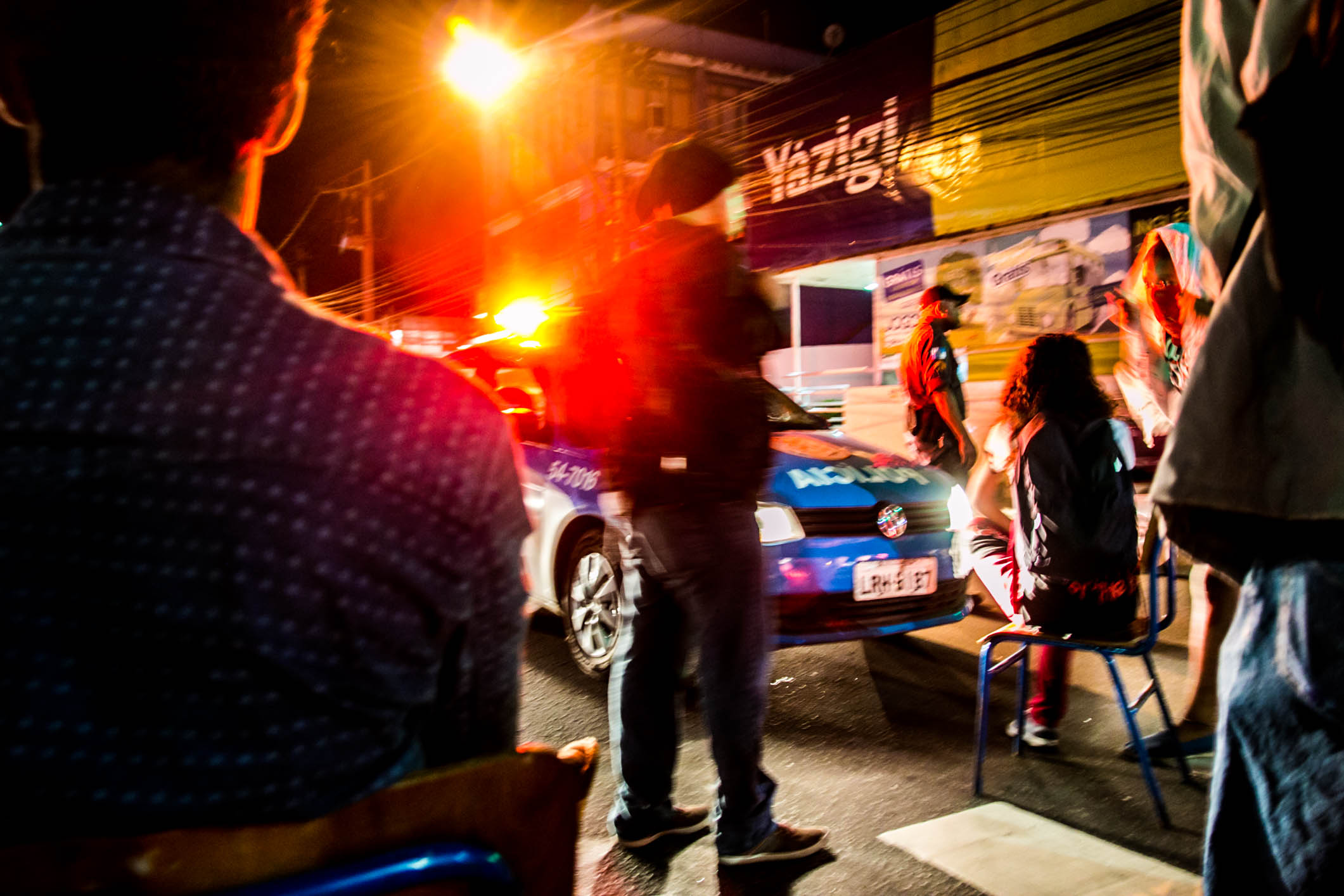 Policiais Militares chegaram ao local e acompanharam a manifestação com as sirenes ligadas, causando um grande barulho, e só as desligaram quando o ato foi dado por encerrado, em frente a prefeitura.