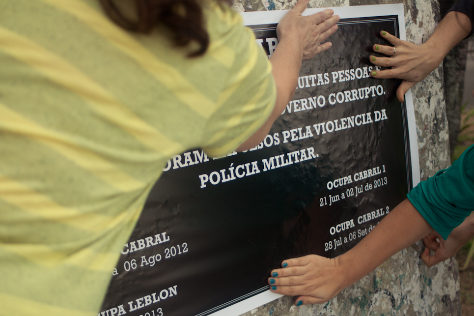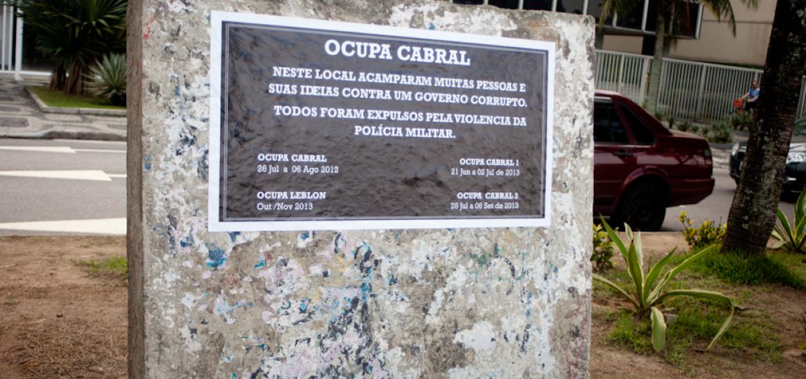 Hoje (23/06) pela manhã, ativistas que participaram das ocupações que aconteceram entre 2012 e 2013, em frente a casa do Sérgio Cabral (ex-governador do Rio de Janeiro), no Leblon, se reuniram para realizar o ato simbólico de afixar uma placa lembrando os dias de resistência que aconteceram no local.
